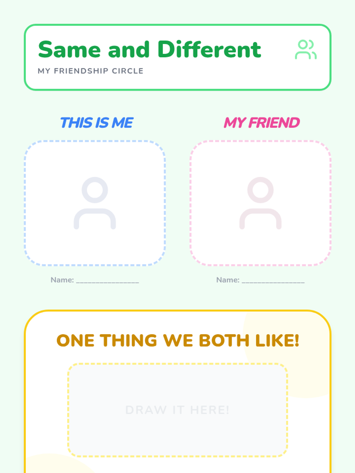 A culminating event where students plan and execute a simple shared activity (like a dance party or snack share). They reflect on how doing things together feels different than doing them alone.