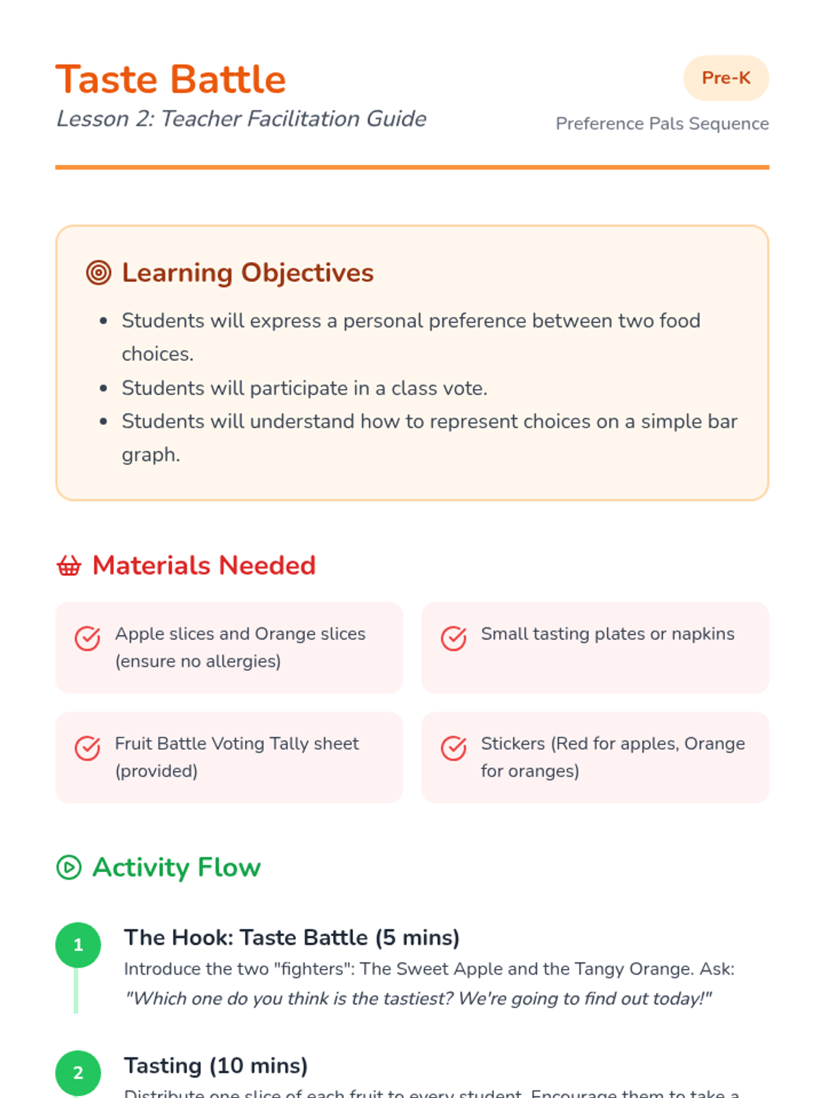 A hands-on tasting activity where students express food preferences, vote for their favorites, and view simple data as a class.