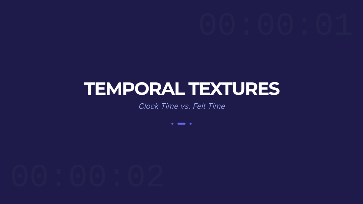 Investigation of temporal elements in dance, including clock time vs. felt time, tempo manipulation, and dynamic phrasing.