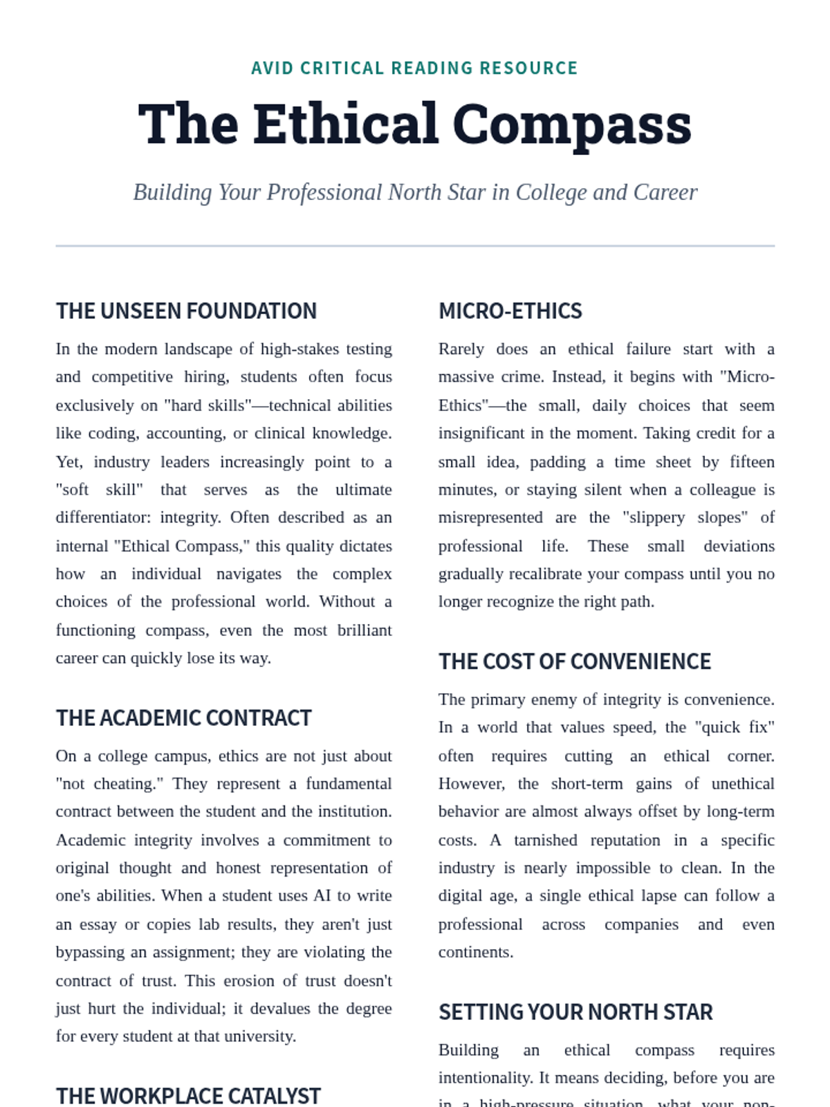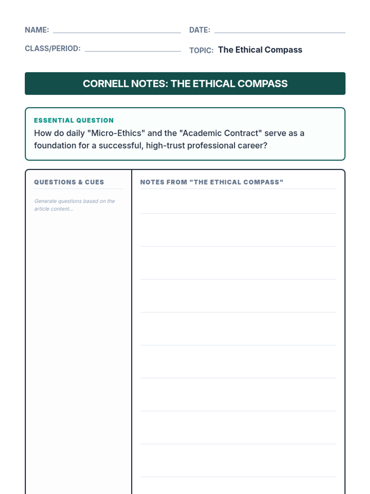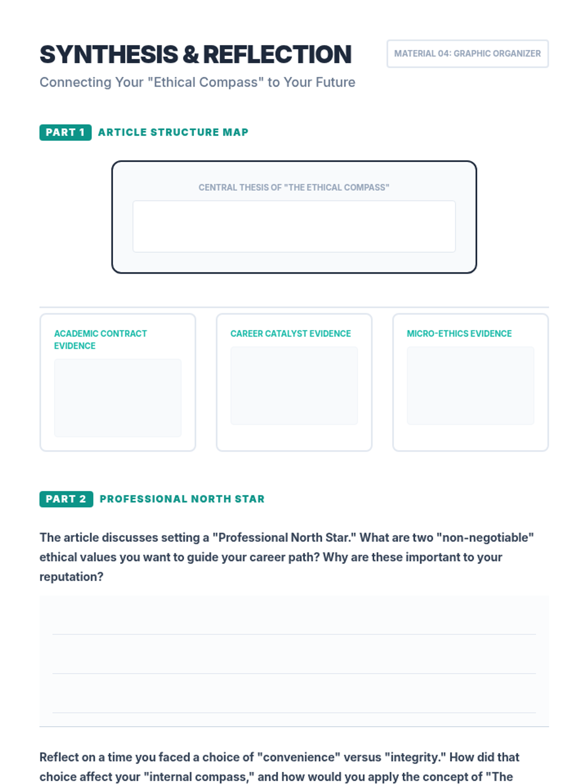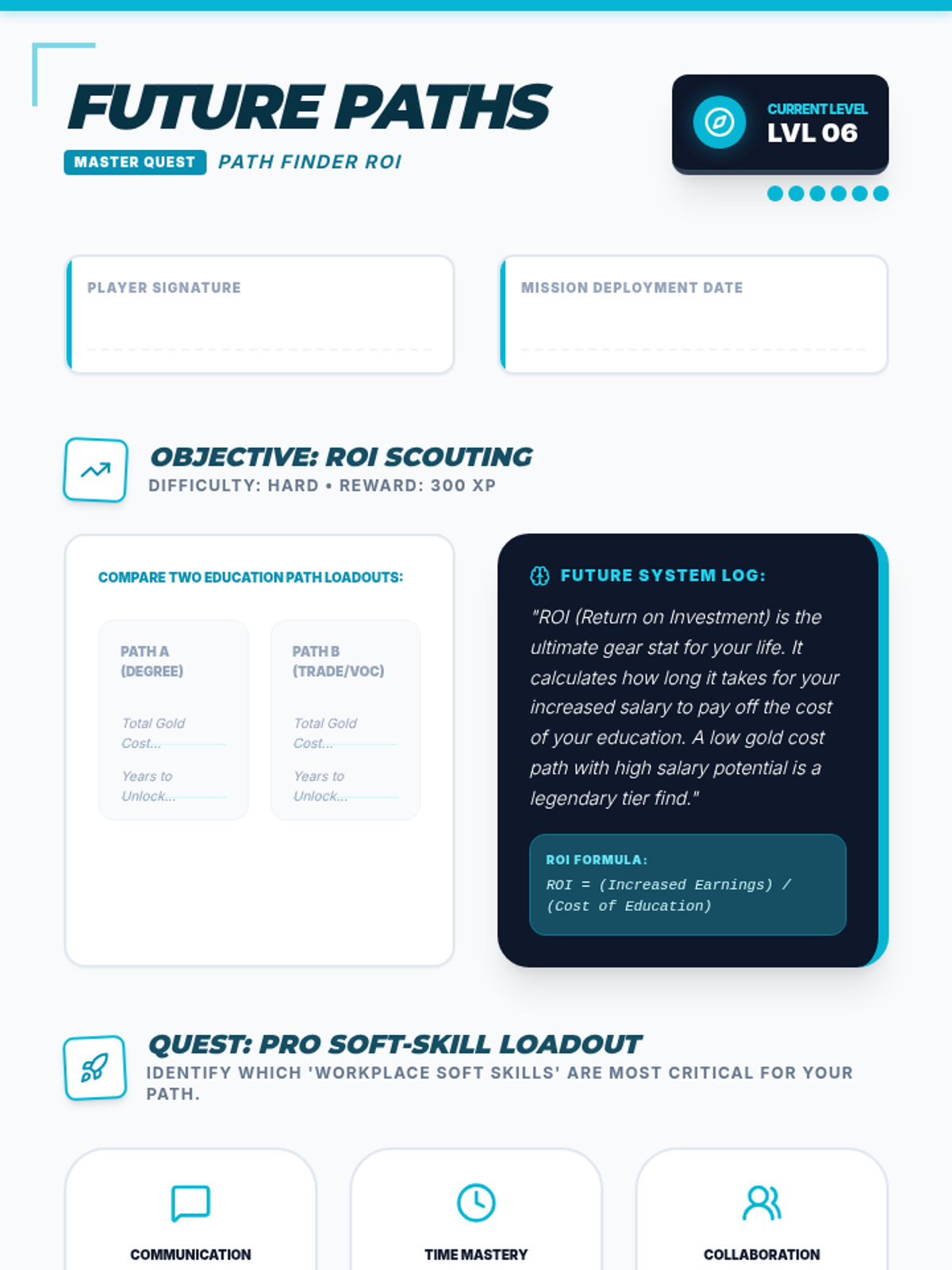 College selection, application workflows, and financial aid navigation including FAFSA and scholarship acquisition. Builds skills in personal statement writing and career exploration to align post-secondary choices with long-term professional goals.