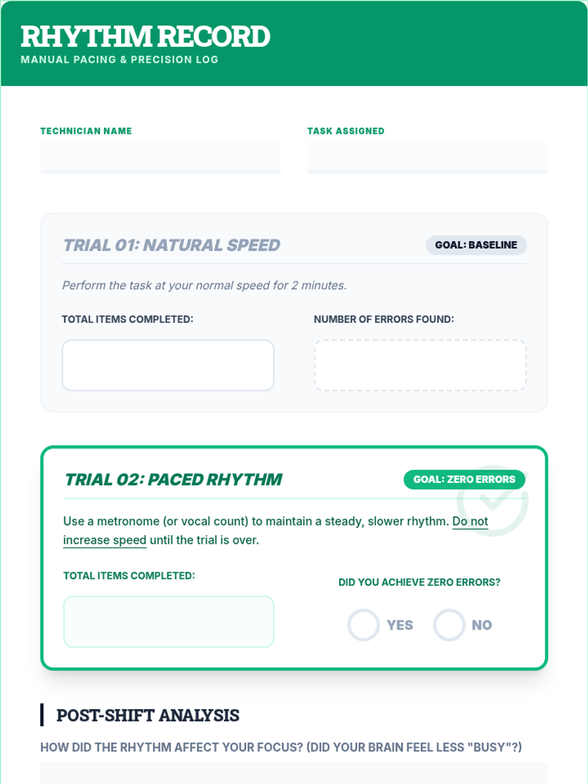 Students engage in repetitive manual tasks to find a productive rhythm, learning to prioritize accuracy over speed through regulated pacing.