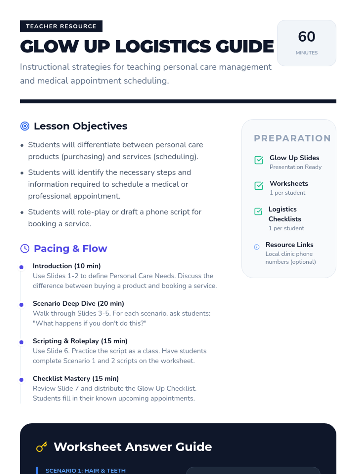A comprehensive workshop focusing on essential adulting skills through immersive role-play, task simulations, and practical financial planning. This lesson covers Independent Living, Employment Readiness, Self-Advocacy, and Financial Literacy.