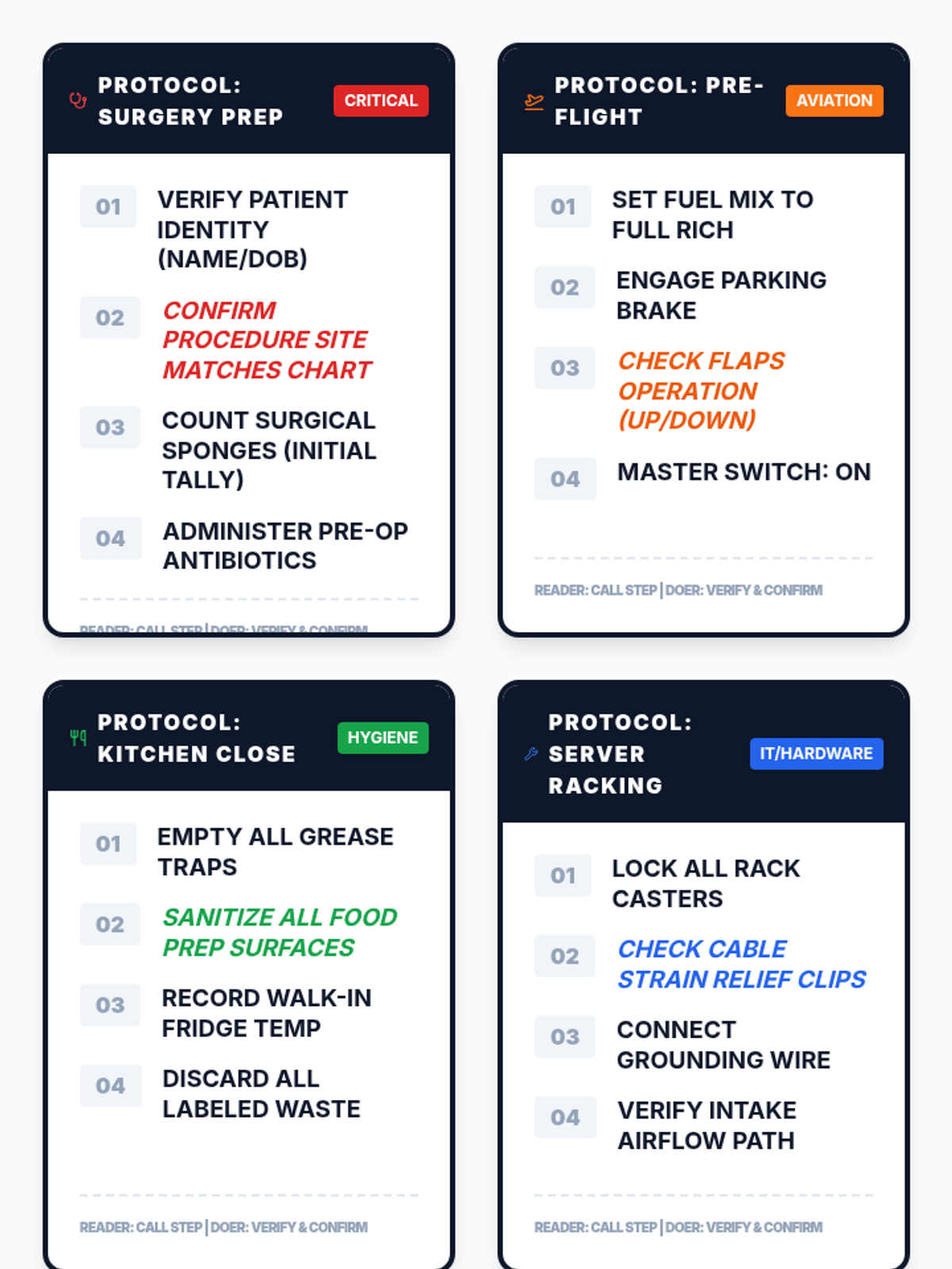 Students practice high-stakes communication and verification techniques used in aviation and medicine to ensure 100% accuracy in safety-critical tasks.