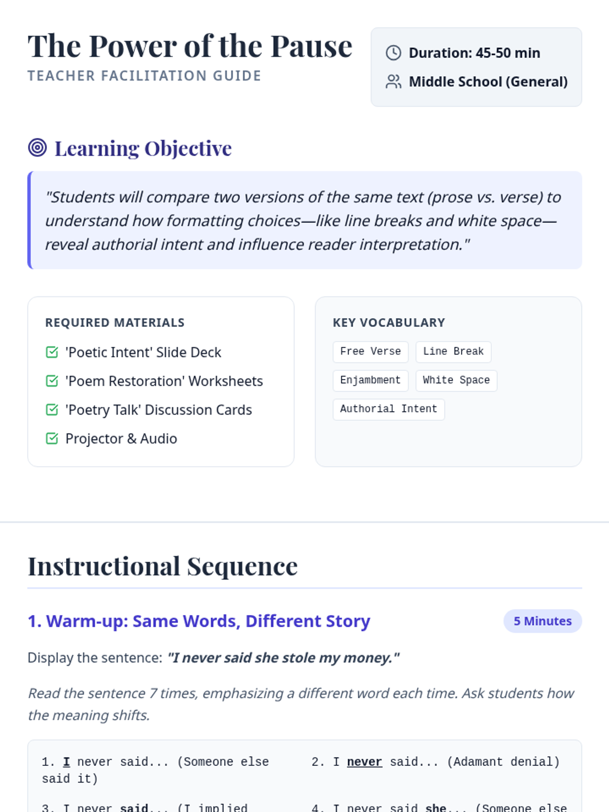 Author's Purpose And ToneIdentification of persuasive, informative, and entertaining intent alongside analysis of word choice to determine emotional stance. Equips students to differentiate between objective reporting and biased perspectives.