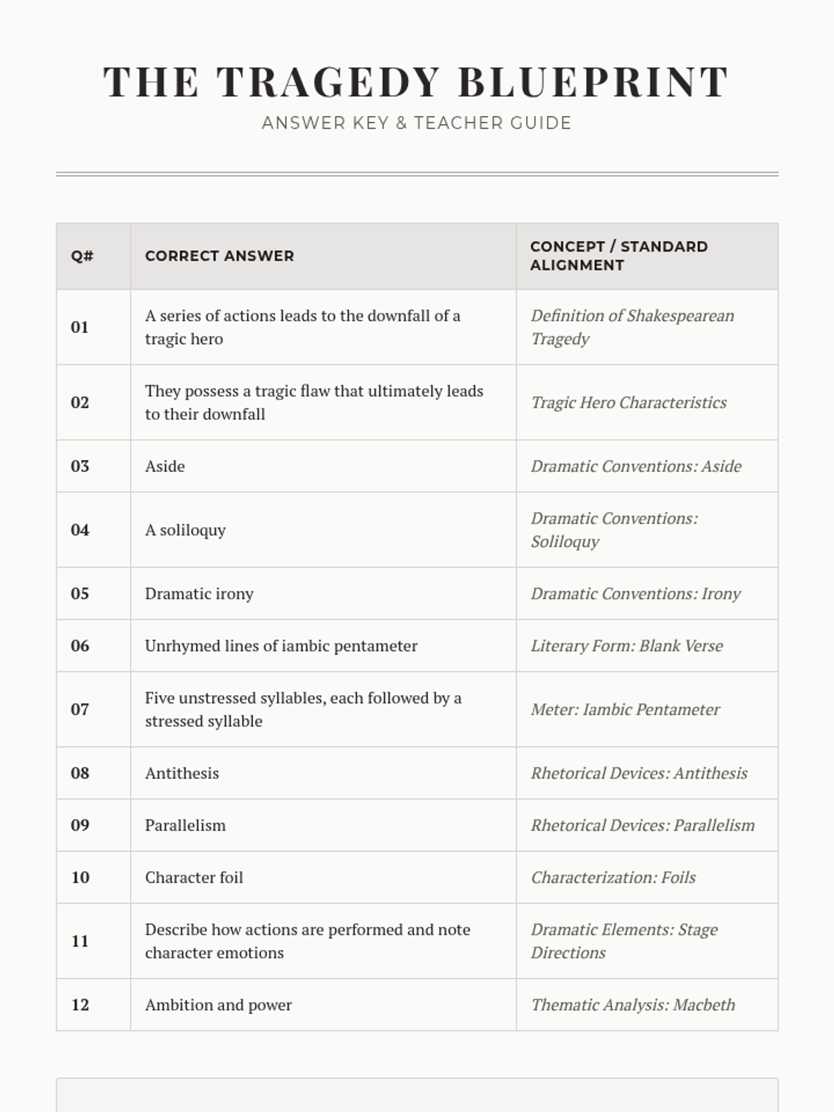 Literary Breakdown Answer Key