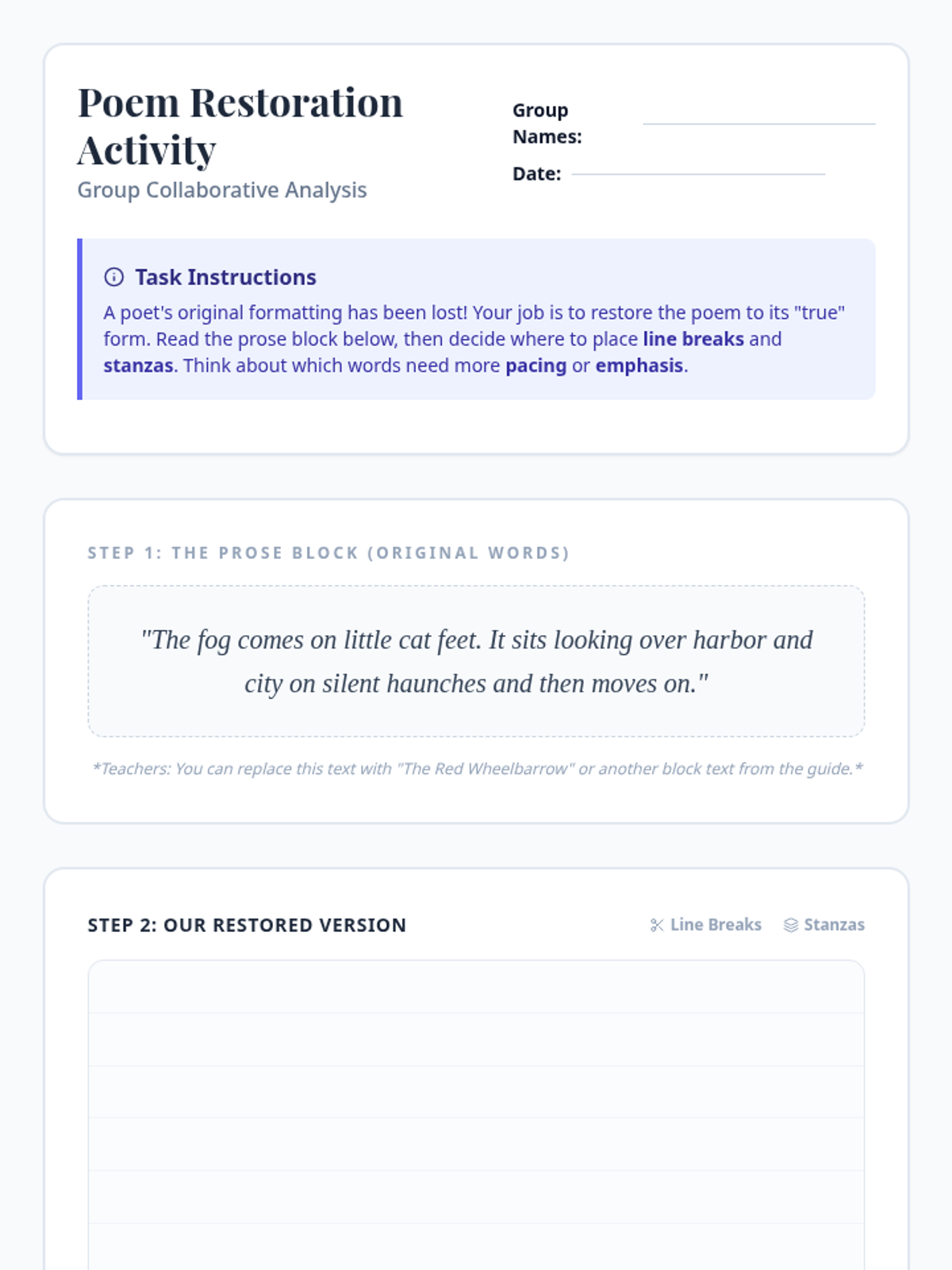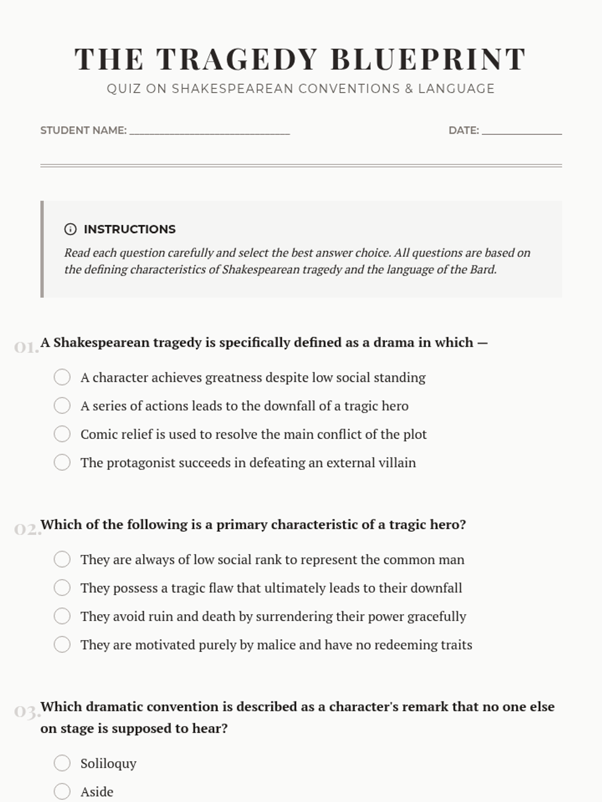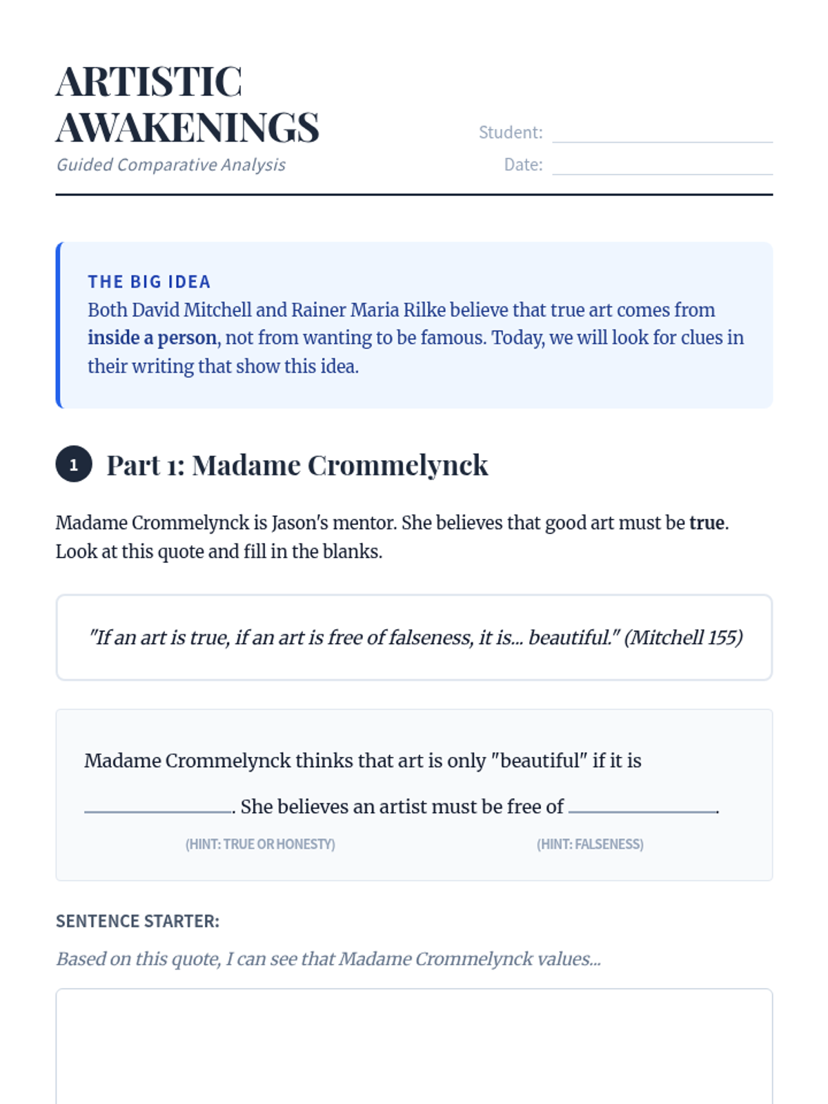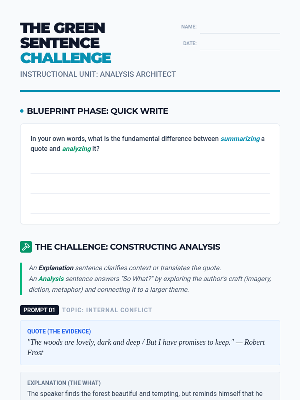 Literary Breakdown Practice Worksheet