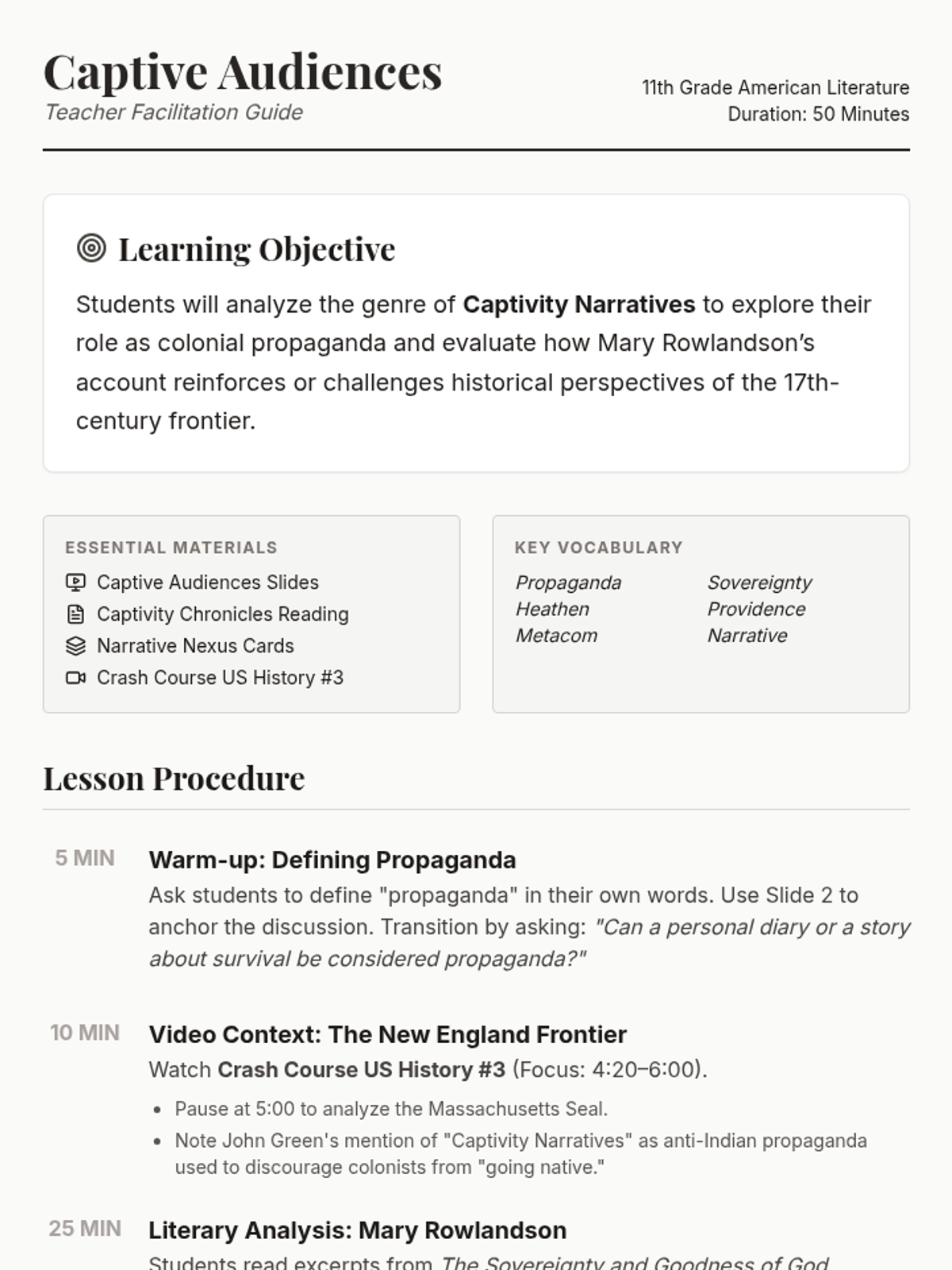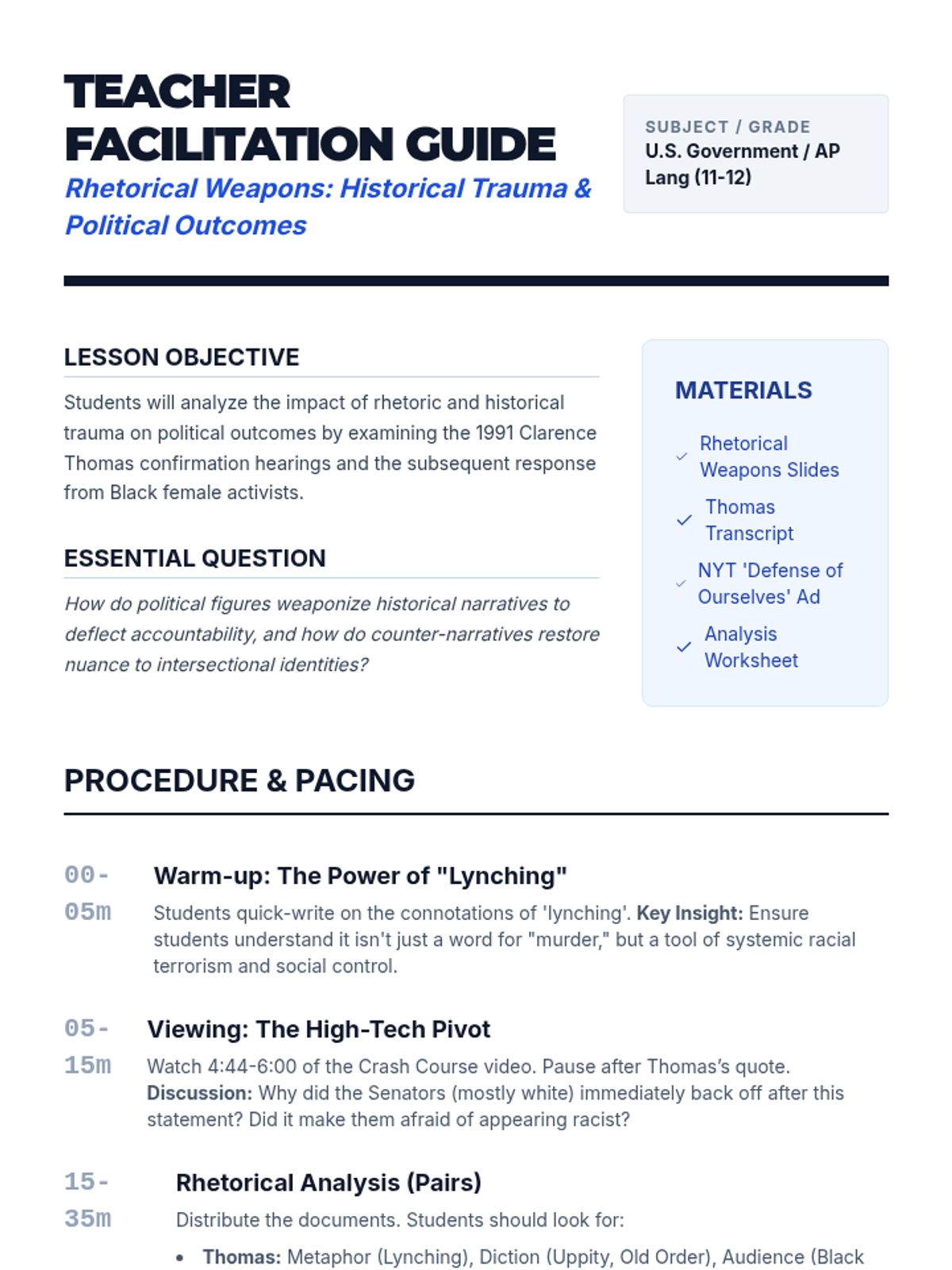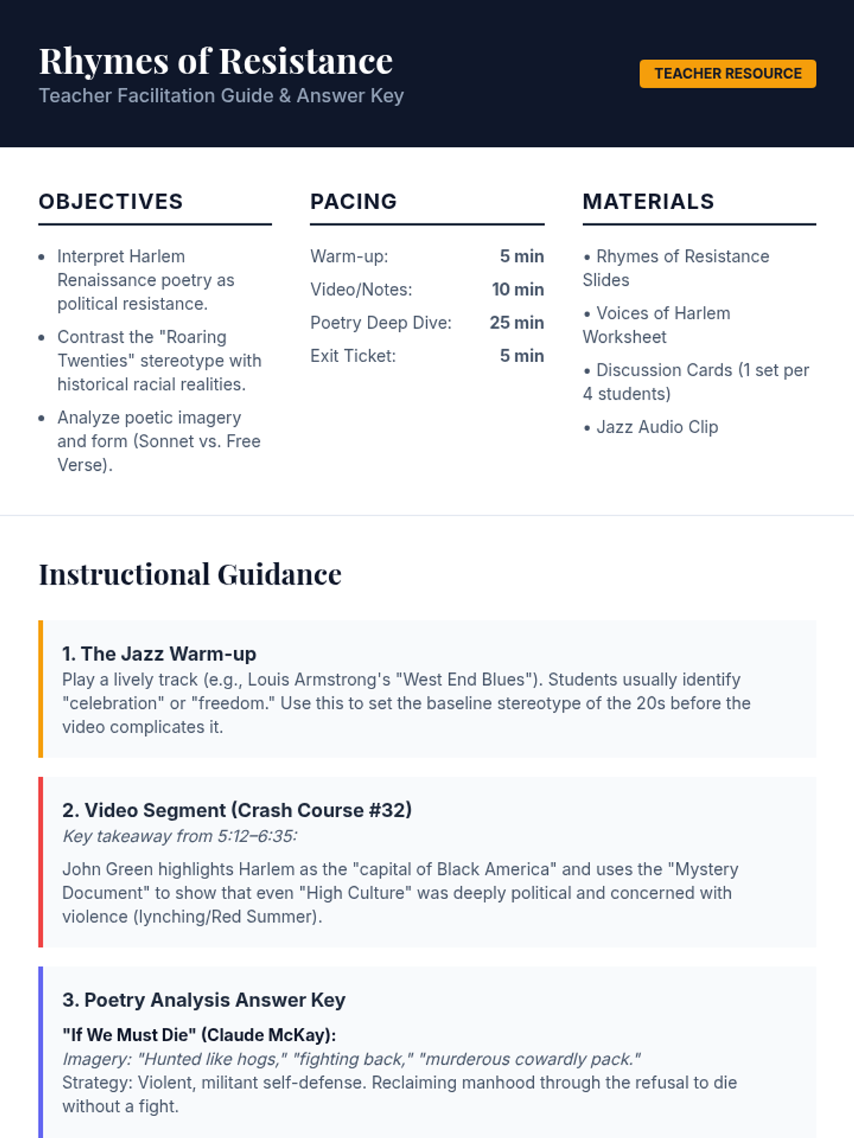 Confrontation Guide Teacher Resource