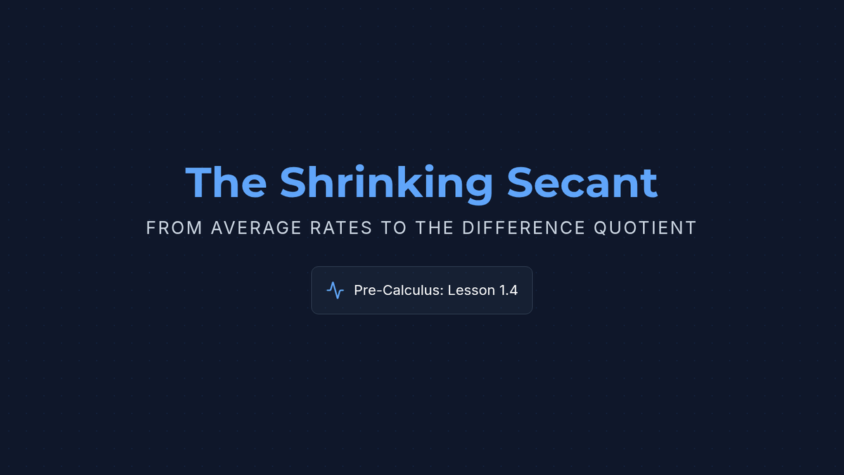 A Pre-Calculus lesson bridging the gap between the algebraic slope formula (average rate of change) and the Difference Quotient by generalizing intervals. Students use video context to move from specific numerical intervals to algebraic ones.