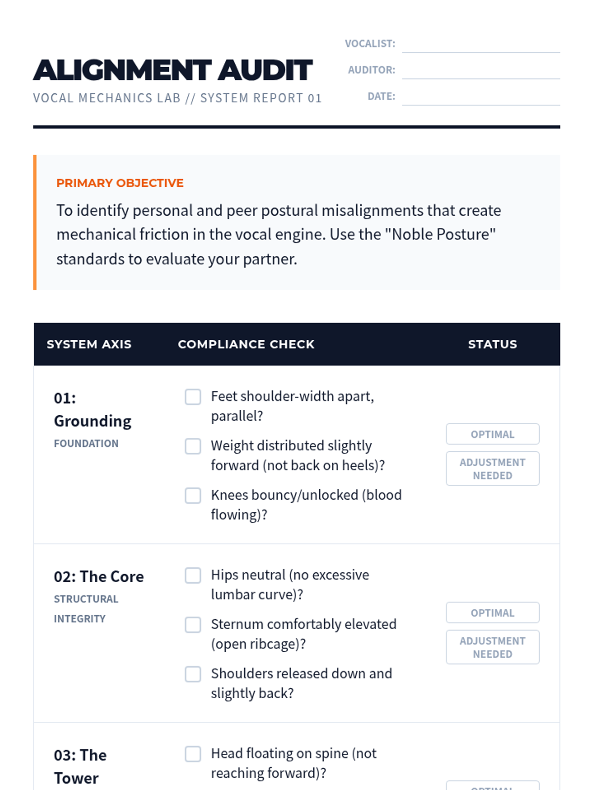 A comprehensive unit for 10th-grade vocalists focusing on the physiological foundations of singing. Students explore posture, breath management, laryngeal function, resonance, and vocal health to build a sustainable and healthy vocal technique.