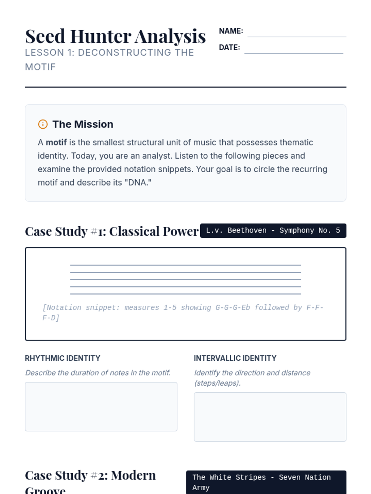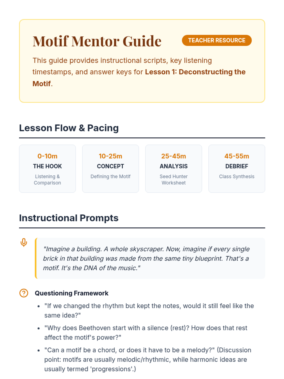 This sequence introduces students to the art of film scoring, focusing on how music influences emotional narrative. Students analyze case studies, create leitmotifs, explore orchestration, and practice synchronization before scoring their own short film clip.