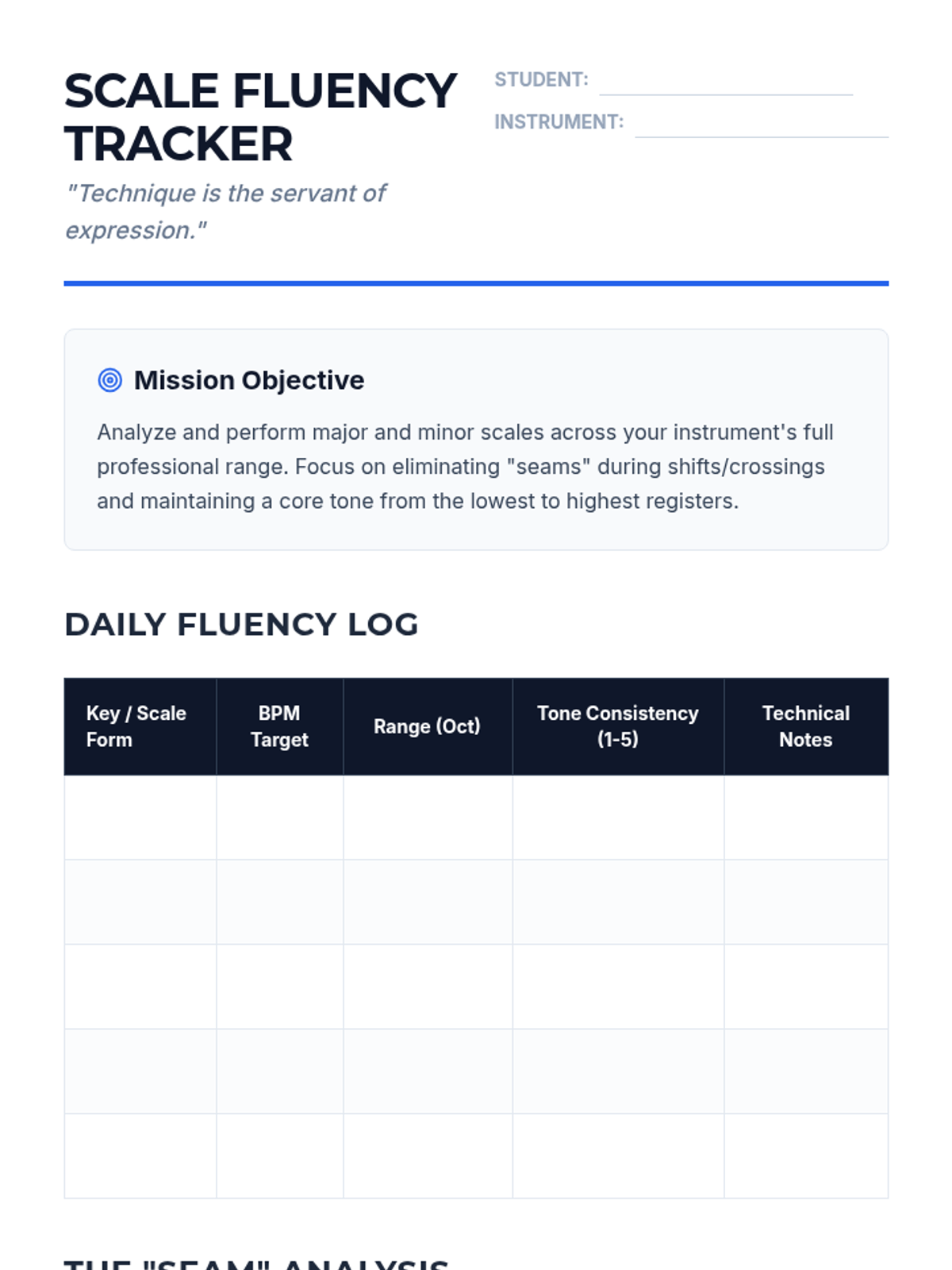 A comprehensive 5-lesson sequence designed for advanced high school musicians to bridge the gap between technical mechanics and expressive artistry. Students engage in self-diagnostic analysis, master technical strategies for tone and velocity, and conclude with a professional-style mock audition.