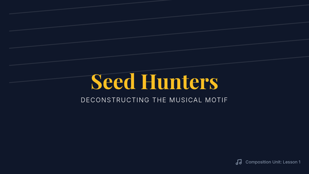 A comprehensive sequence for 8th-grade students on melodic construction, focusing on motif development, scale structures, and phrase architecture. Students move from abstract contour mapping to formal 16-bar composition.