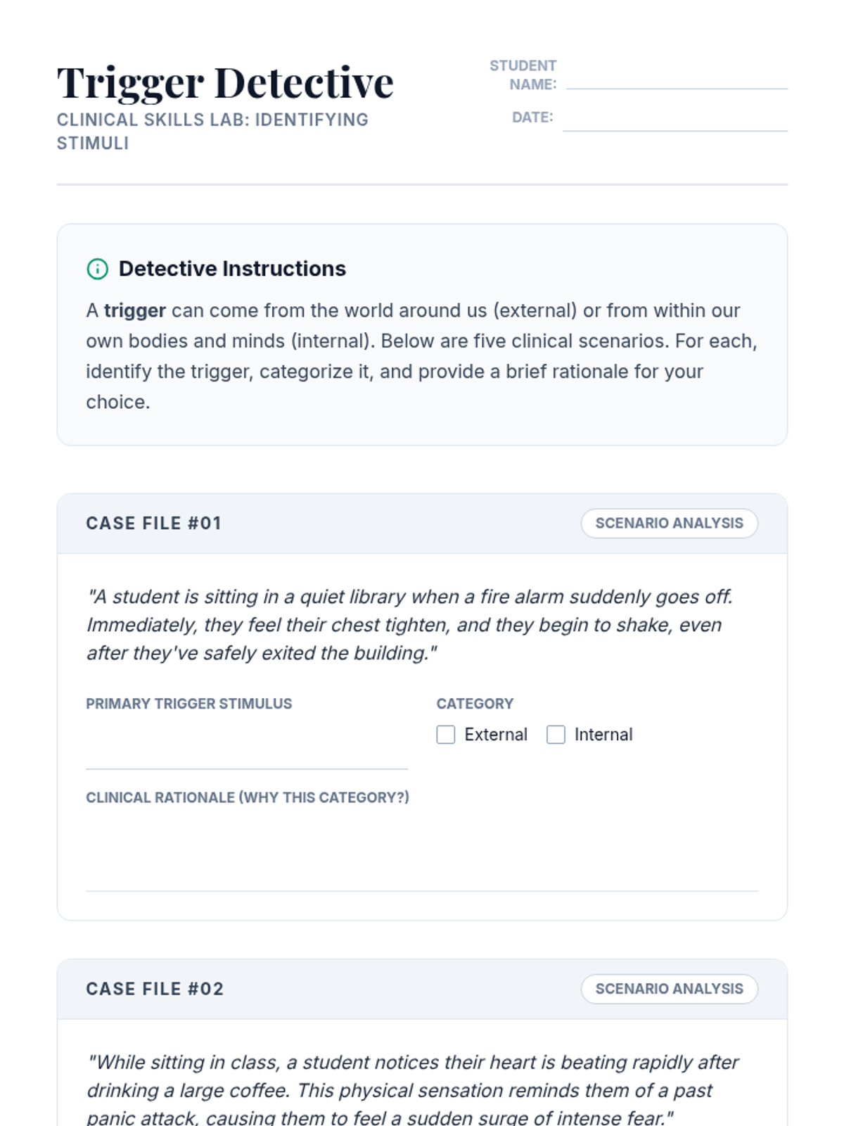 A comprehensive sequence for 10th-grade students focusing on identifying, analyzing, and mapping trauma triggers and behavioral responses using the Window of Tolerance framework. Students progress from defining stimuli to clinical case analysis, preparing them for foundational skills in counseling and safety planning.