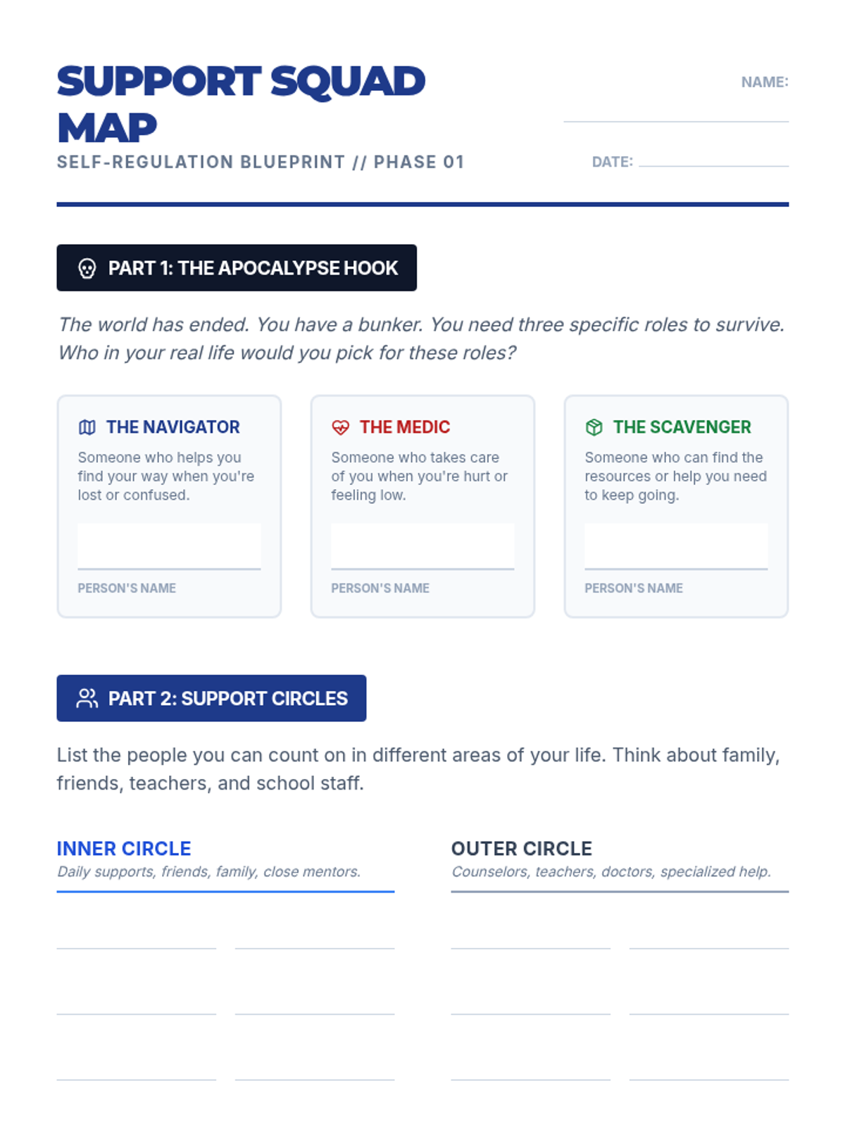 A 5-lesson unit where 10th-grade students design a personal self-regulation plan. They map support networks, create crisis cards, engineer preventative routines, set SMART behavior goals, and compile a final success portfolio.