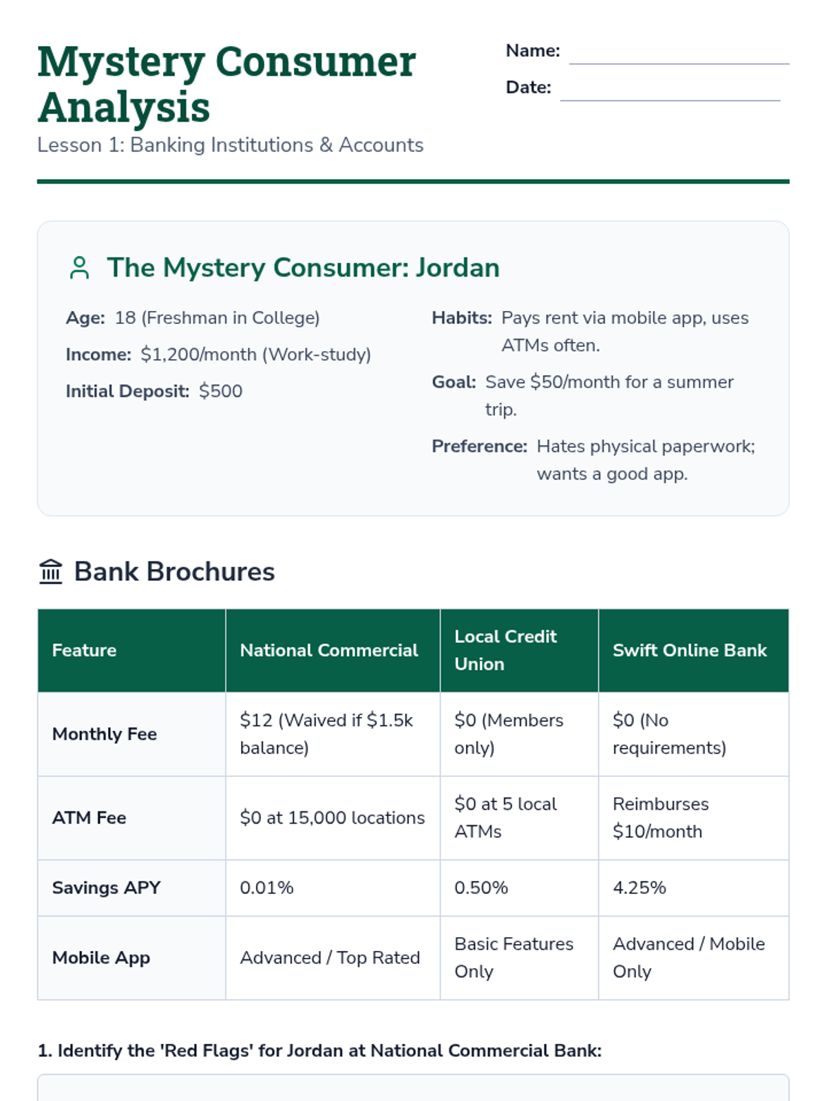 This sequence focuses on the financial implications of banking choices and the modern tools used to manage them. Students investigate the mathematics of interest, analyze fee structures, navigate digital banking platforms, and master the skill of account reconciliation.