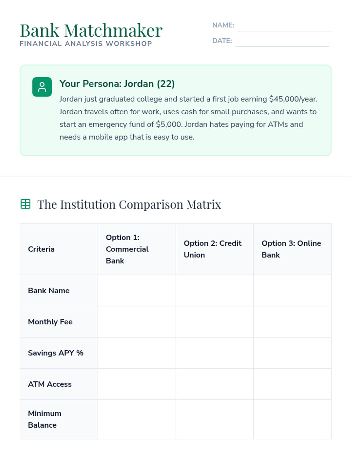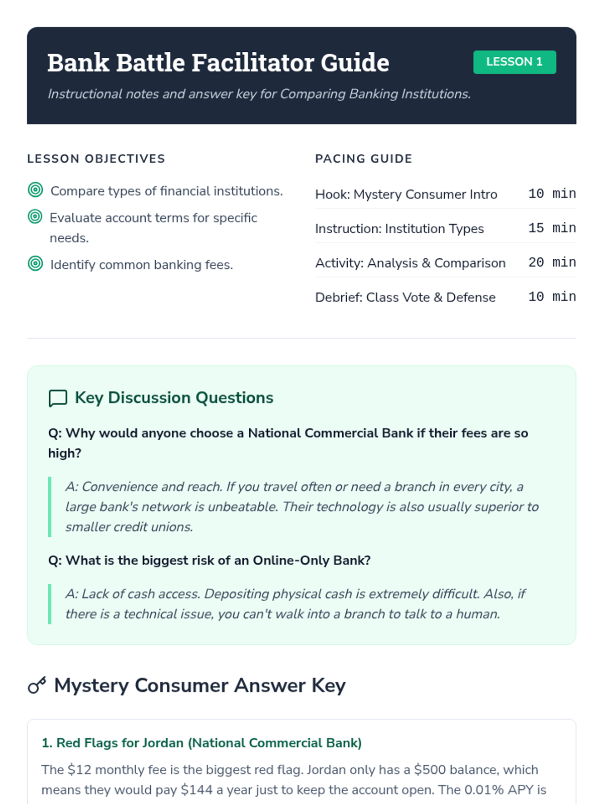 A comprehensive unit on banking, compound interest, credit scoring, and debt management, designed for 10th-grade economics students to build practical financial literacy.