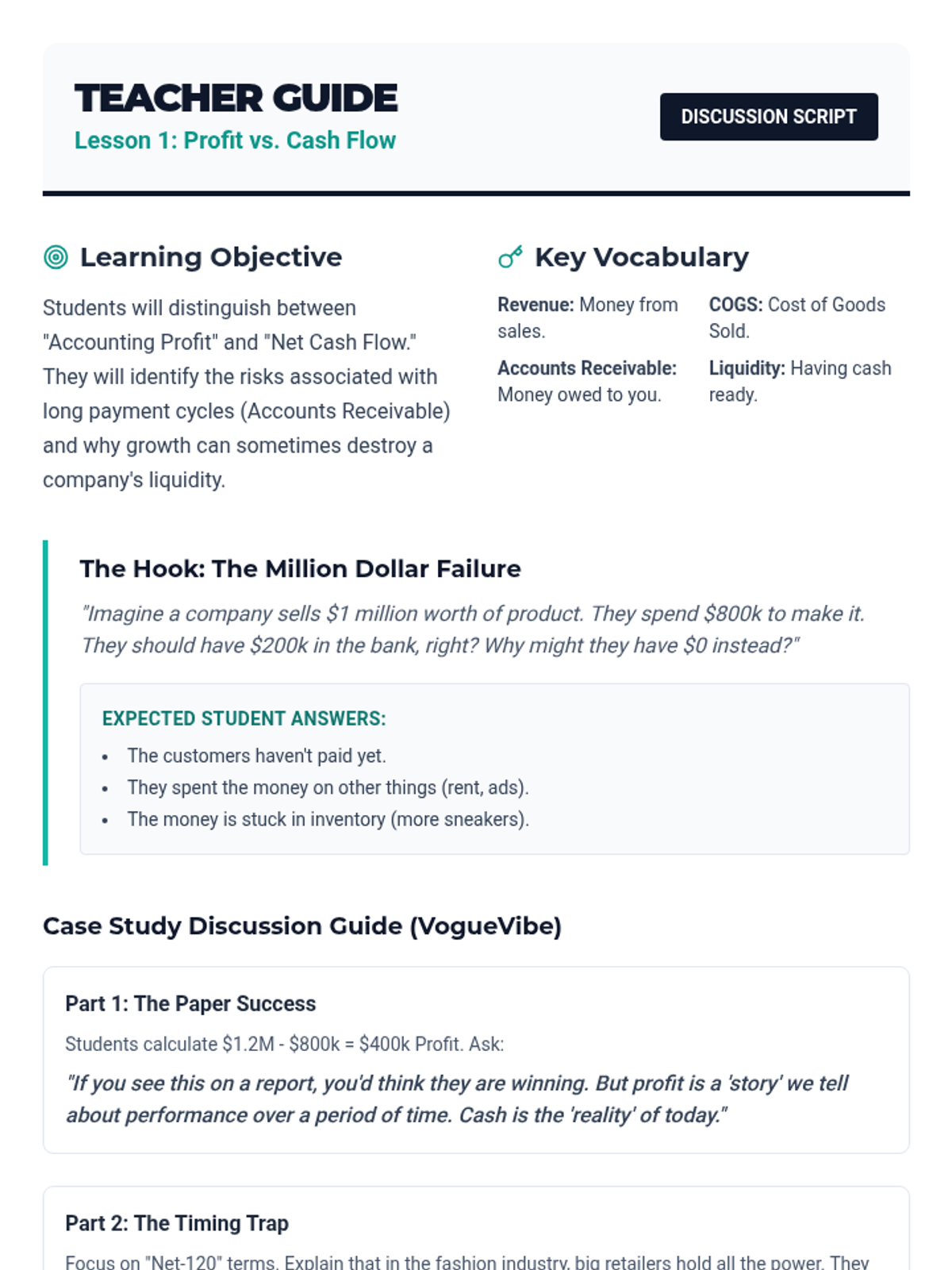 A comprehensive sequence for 10th-grade students on managing startup cash flow, burn rates, and financial survival strategies. Students will move from understanding basic financial concepts to managing a complex startup simulation.
