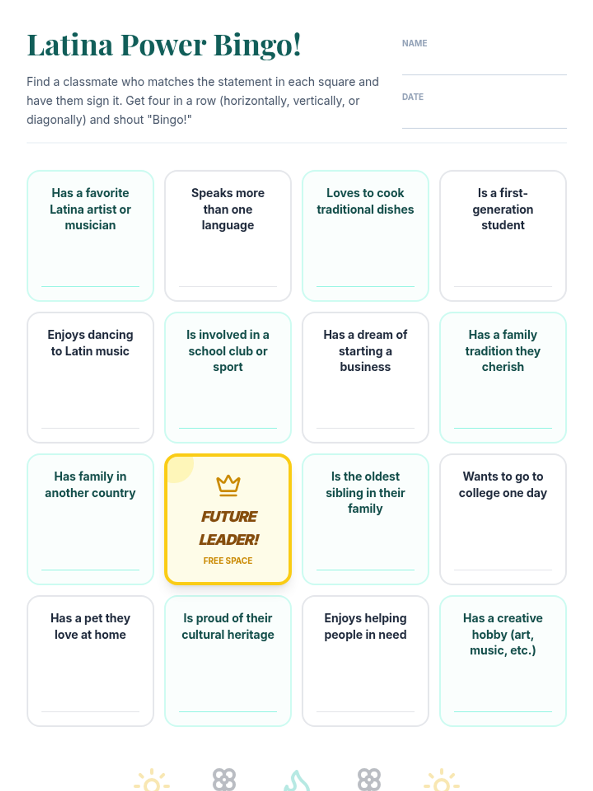 A four-part empowerment sequence for 10th-grade Latina students focused on building community, identifying strengths, taking collective action, and practicing gratitude.