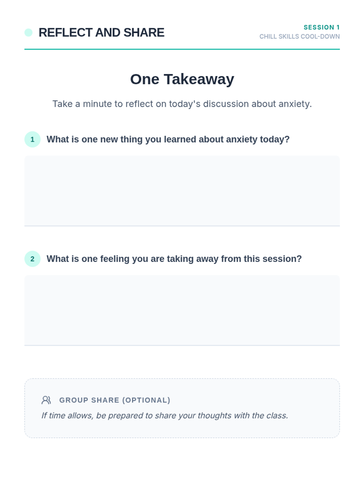 A four-session Tier 1 anxiety group for 10th-grade students, focusing on understanding anxiety, identifying triggers, developing coping strategies, and building resilience through interactive discussions and personal reflection.
