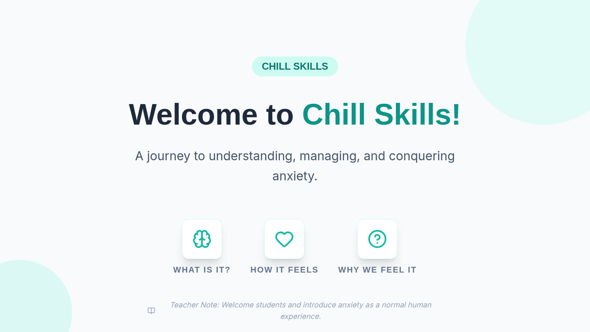 A 6-session group unit designed for 10th graders to explore and practice effective coping skills for anxiety. Students build a toolkit of strategies to recognize triggers, manage thoughts, and create healthy routines.