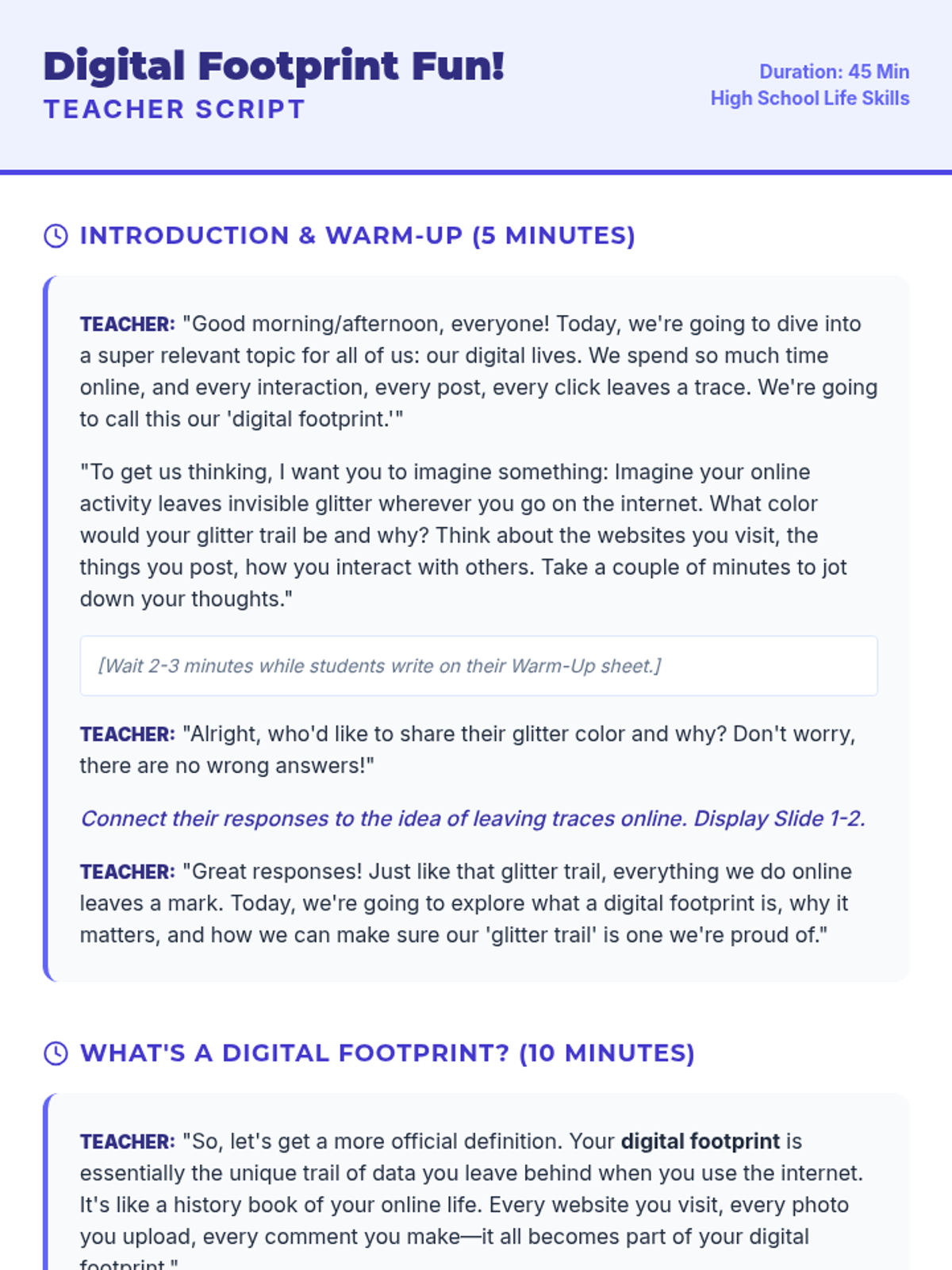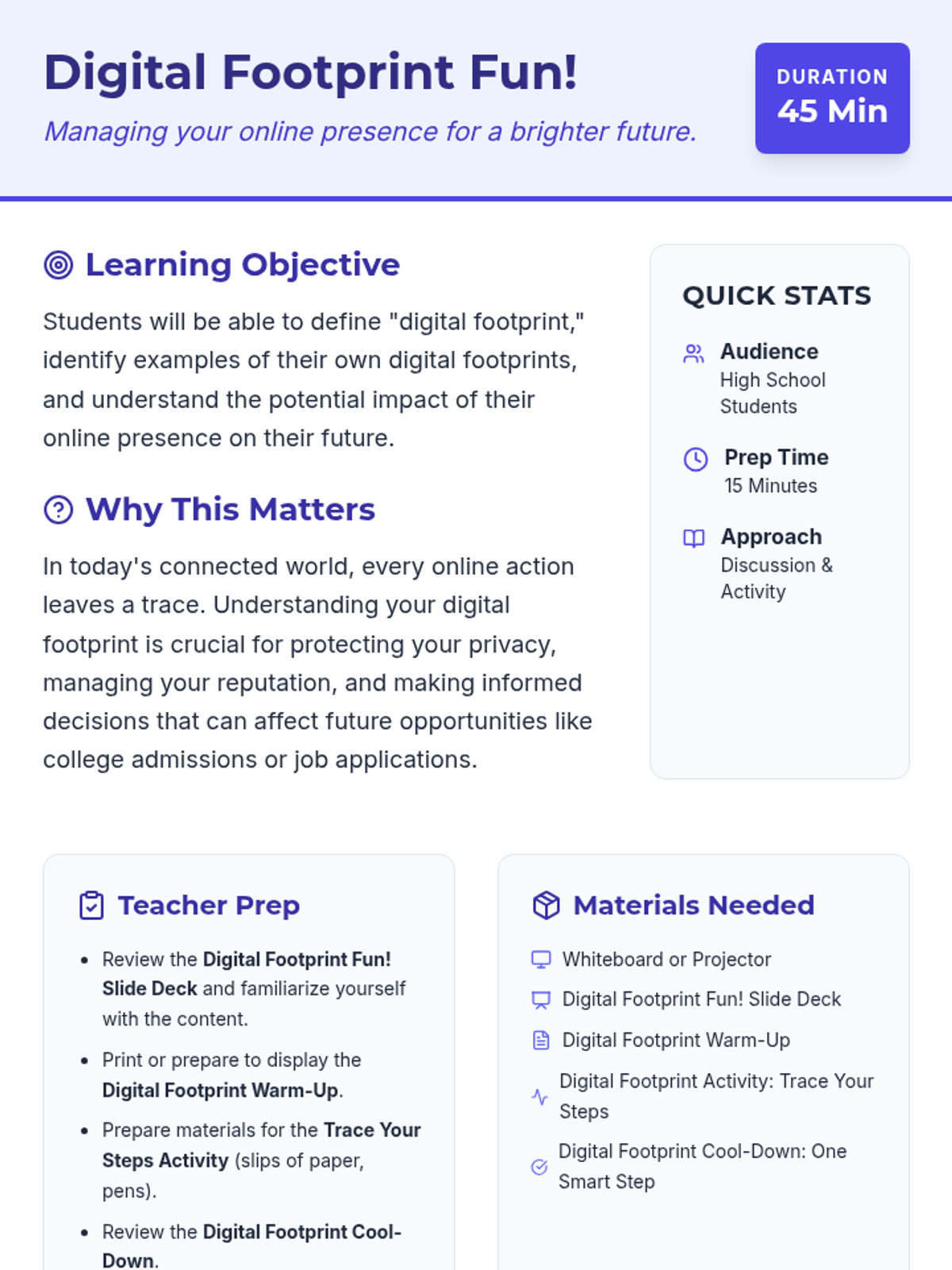 A comprehensive sequence designed to prepare high school students for their digital and professional futures, covering online presence management and essential self-advocacy skills.