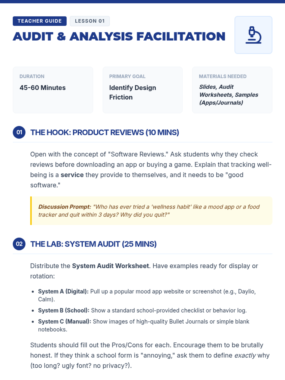 A comprehensive sequence where 8th-grade students act as 'organizational consultants' to diagnose and solve scheduling conflicts and executive functioning challenges through case studies. Students learn root cause analysis, professional self-advocacy, emotional regulation strategies for procrastination, and tool evaluation before creating a final consultancy report.