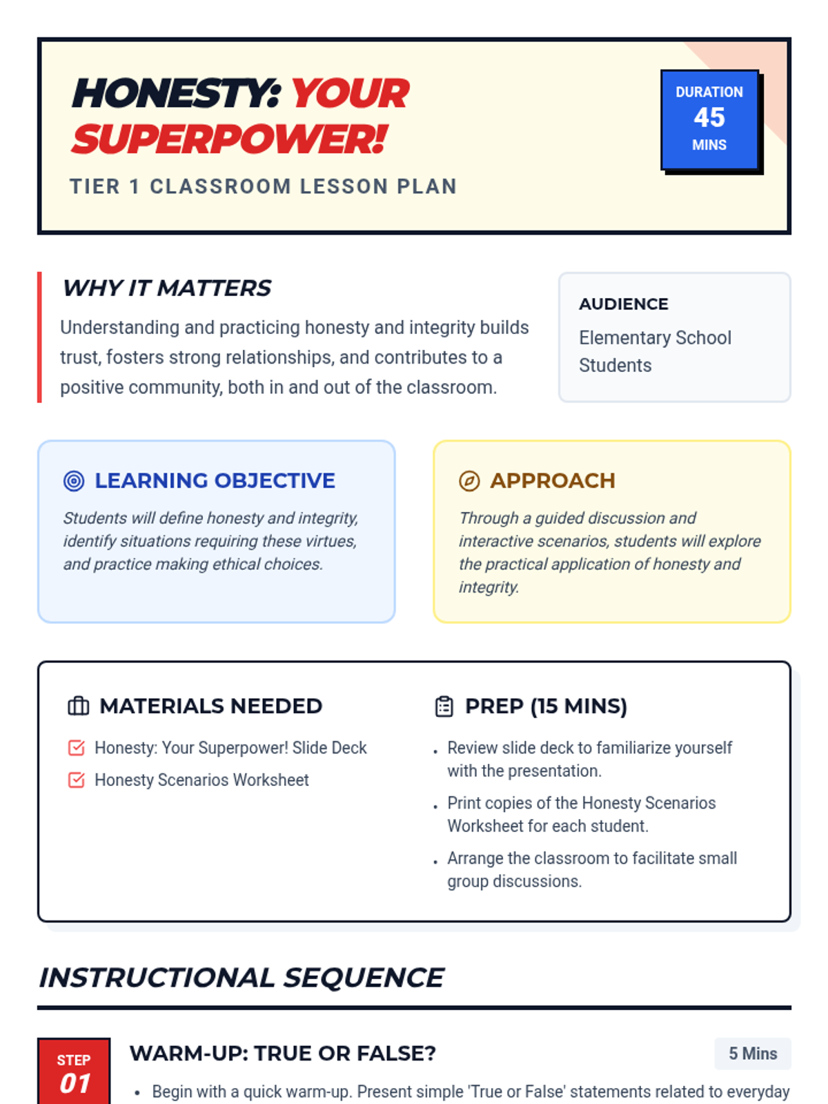 This sequence focuses on developing core character strengths: honesty, integrity, and social connection. Students learn to navigate ethical dilemmas and build meaningful relationships through interactive scenarios and mentorship.
