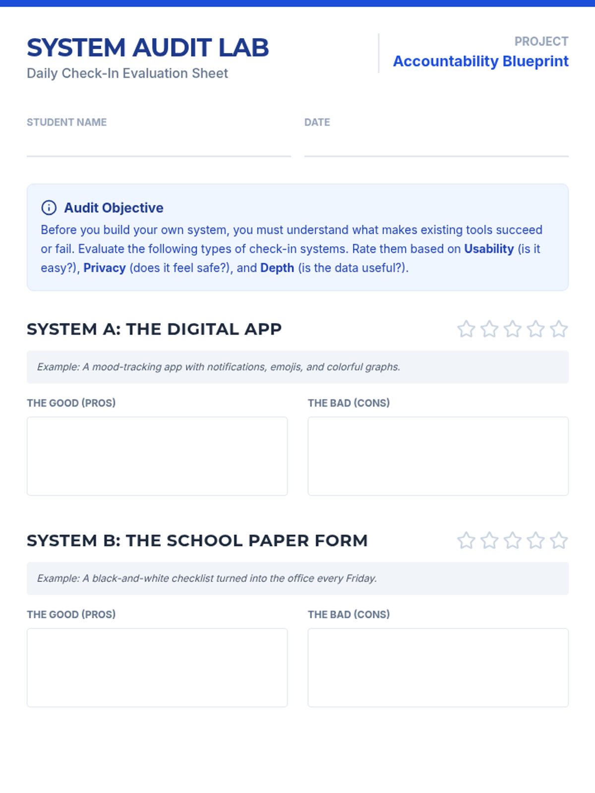 A project-based unit where students act as organization consultants to evaluate, redesign, and implement efficient physical systems in their classroom. Students learn systems thinking, visual communication, and the psychology of environmental design to create a more functional learning space.