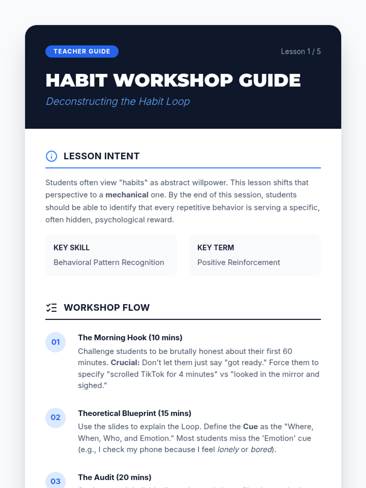 A workshop-based sequence for 10th graders to master the science of positive reinforcement for personal habit formation, focusing on the cue-routine-reward loop and strategic self-regulation.