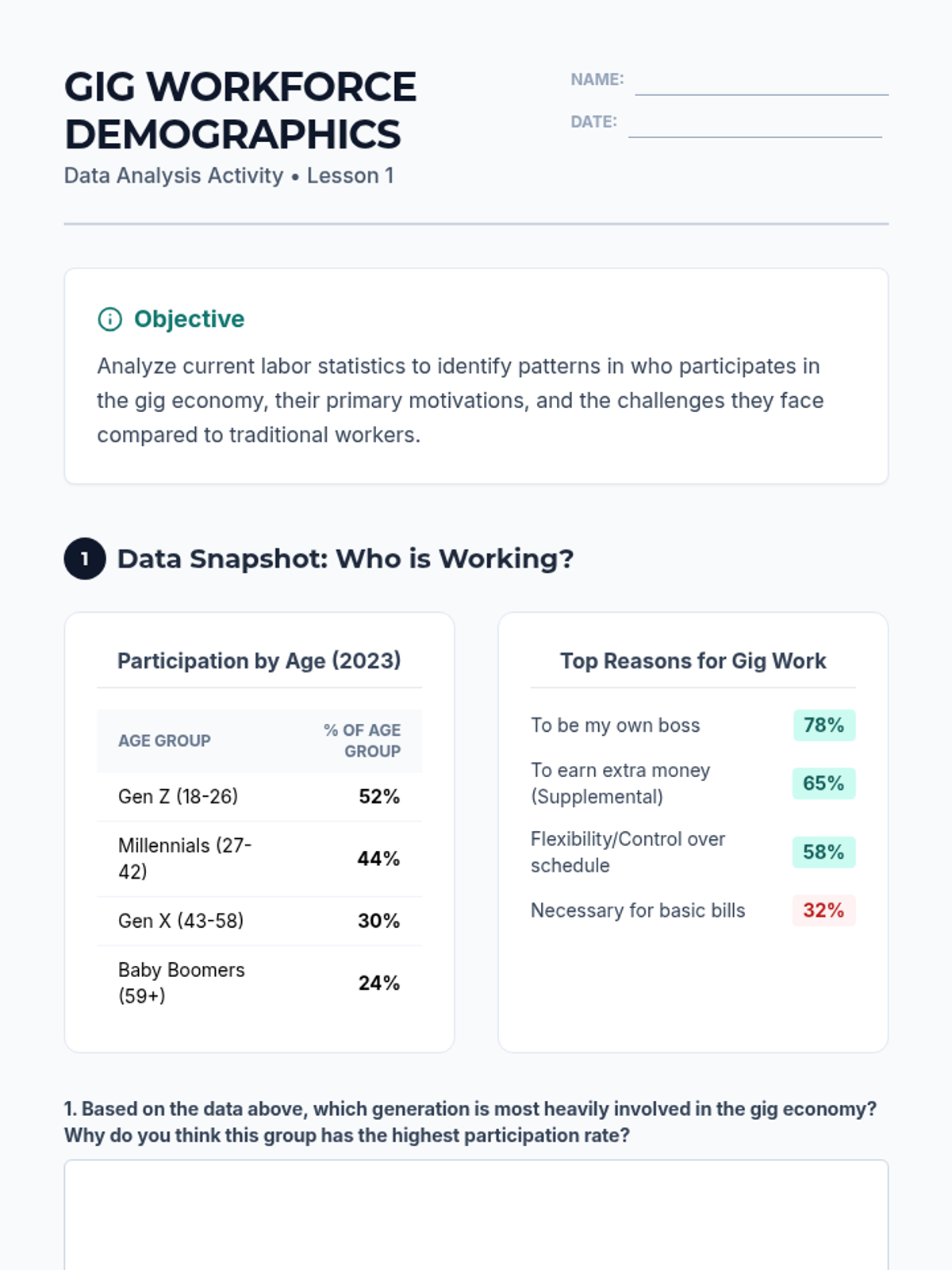 A comprehensive investigation into the gig economy, contrasting traditional employment with independent contracting. Students analyze the economic, legal, and ethical implications of algorithmic management and worker classification, culminating in a formal legislative debate.