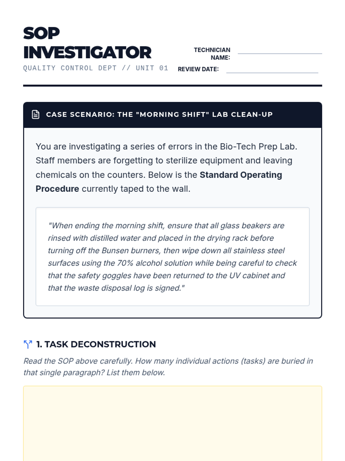This sequence explores the critical importance of single-step focus in vocational environments. Students analyze how working memory limitations impact safety and quality, practicing sequential execution through industrial case studies, SOP development, and high-stakes simulations.