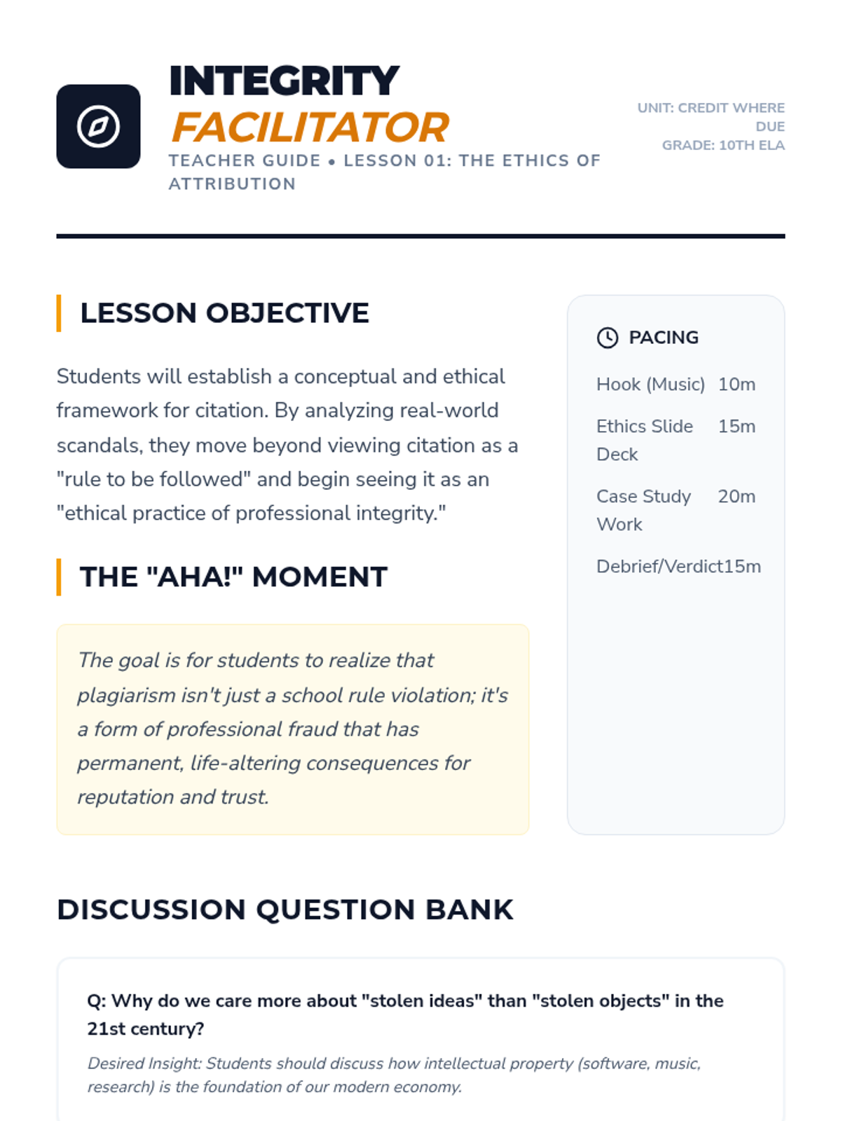 This sequence guides 10th-grade students through the technical and ethical foundations of academic citation. Moving beyond rote memorization of formatting rules, students explore the 'why' of attribution, learn to audit automated tools, and master the art of integrating scholarly voices into their own writing.