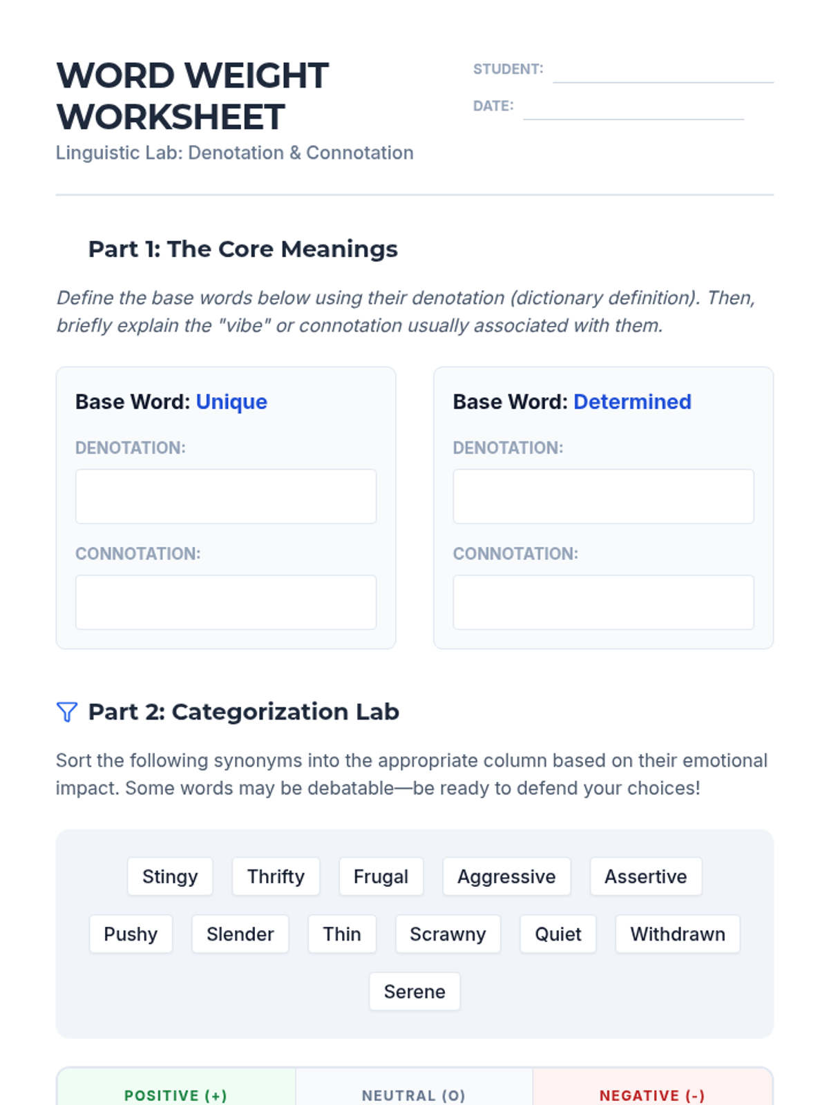 A deep dive into the nuances of English vocabulary for advanced 10th-grade students. This sequence moves beyond basic definitions to explore how connotation, register, and intensity shape tone and influence audience perception in academic and professional contexts.