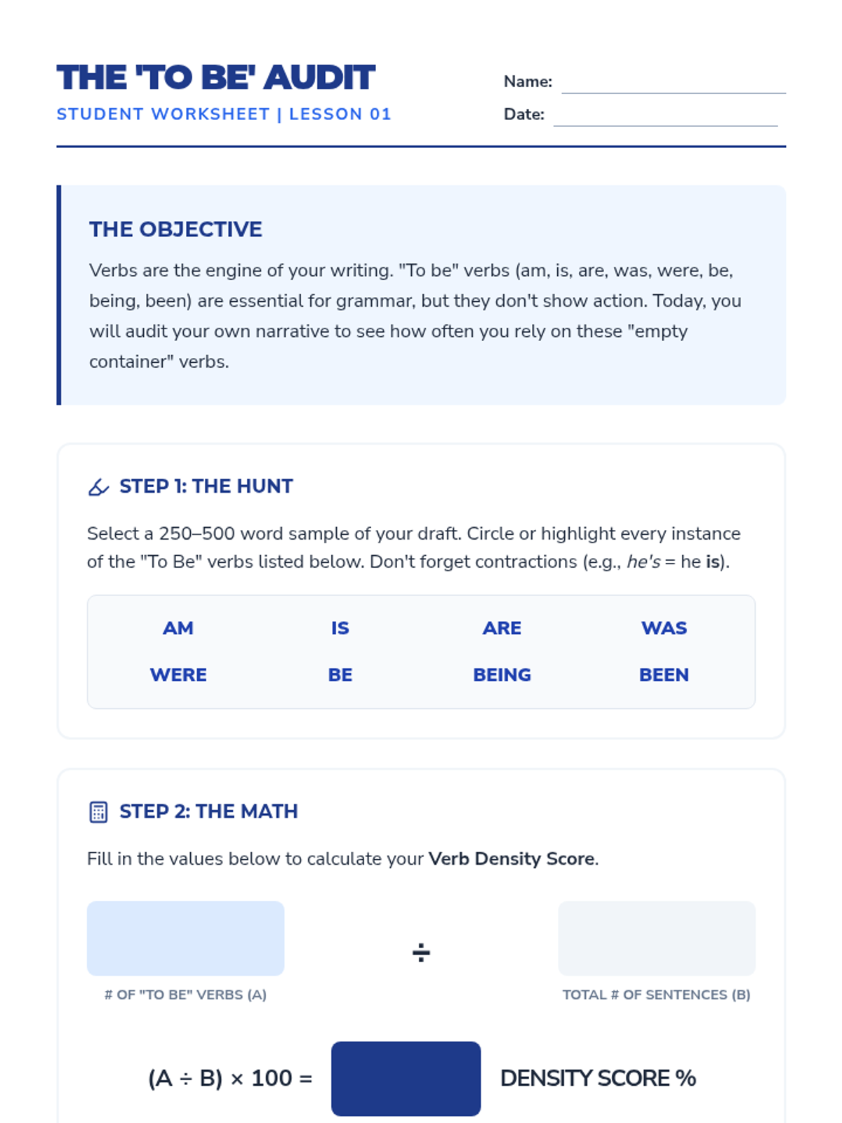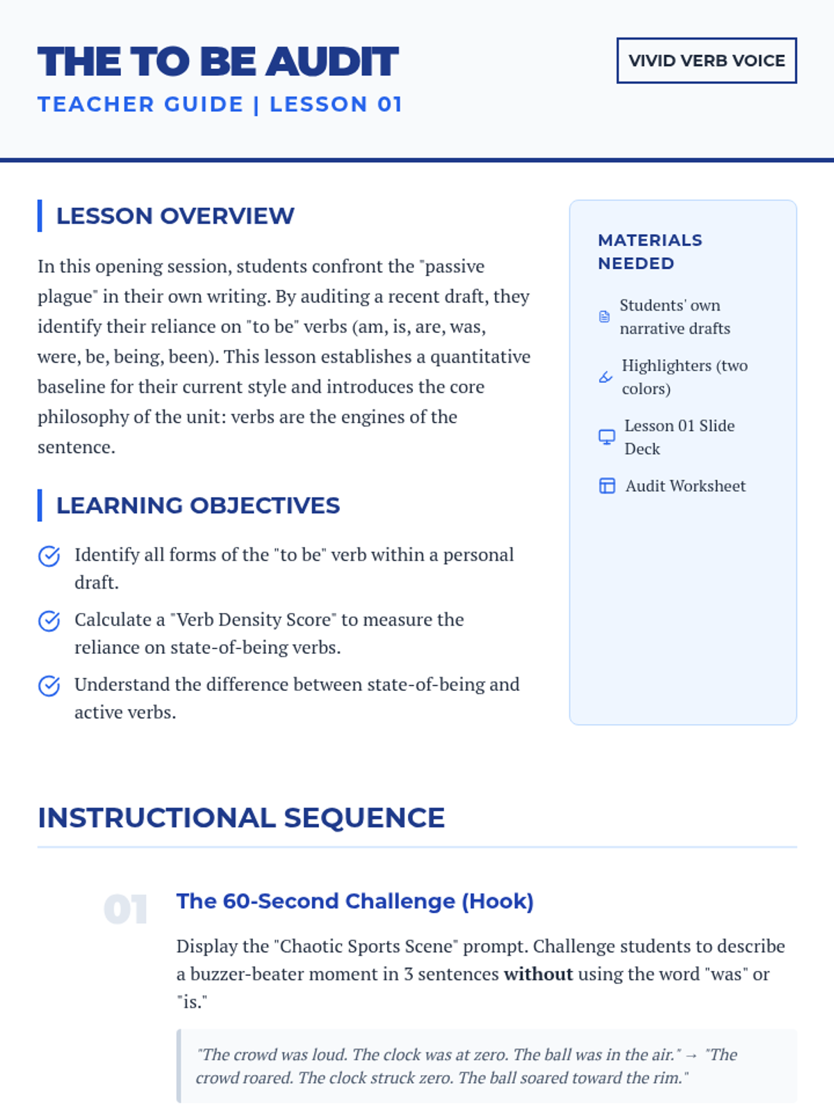 A comprehensive writing workshop that moves 9th-grade students from basic recognition of active and passive voice to stylistic mastery, focusing on clarity, vigor, and intentional rhetorical choices.