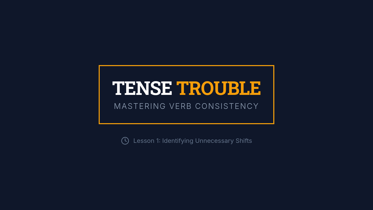 A 10th-grade English Language Arts sequence focused on the mastery of verb tense consistency. Students will learn to identify unnecessary shifts, understand academic conventions like the literary present, and apply logical time shifts in complex writing.