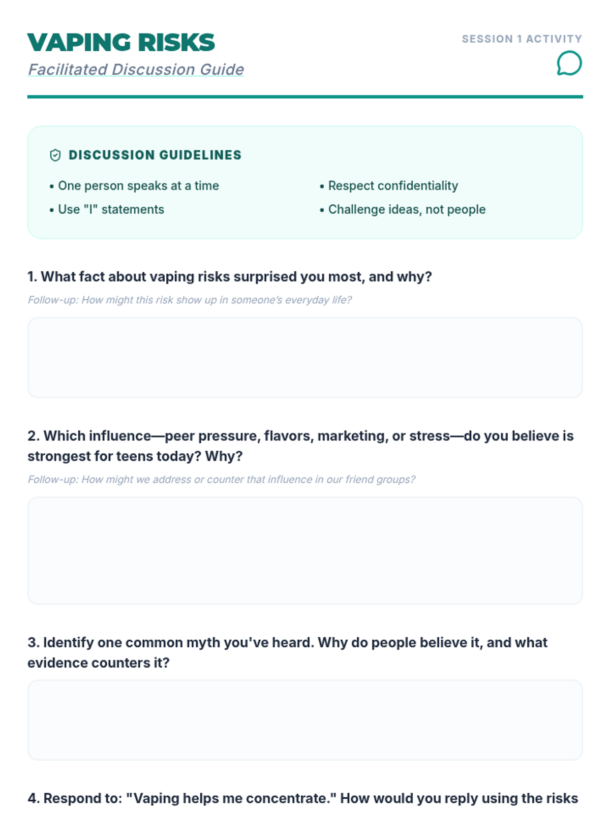 A 4-session Tier 2 intervention for high school students focused on vaping cessation, quitting strategies, and building healthy replacement habits through peer support and interactive activities.