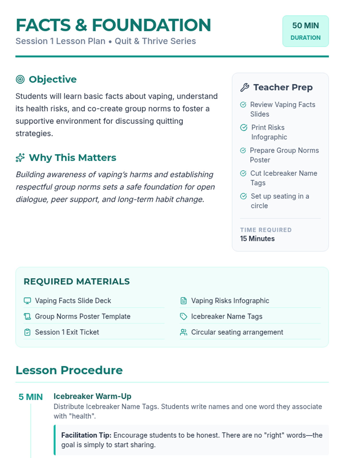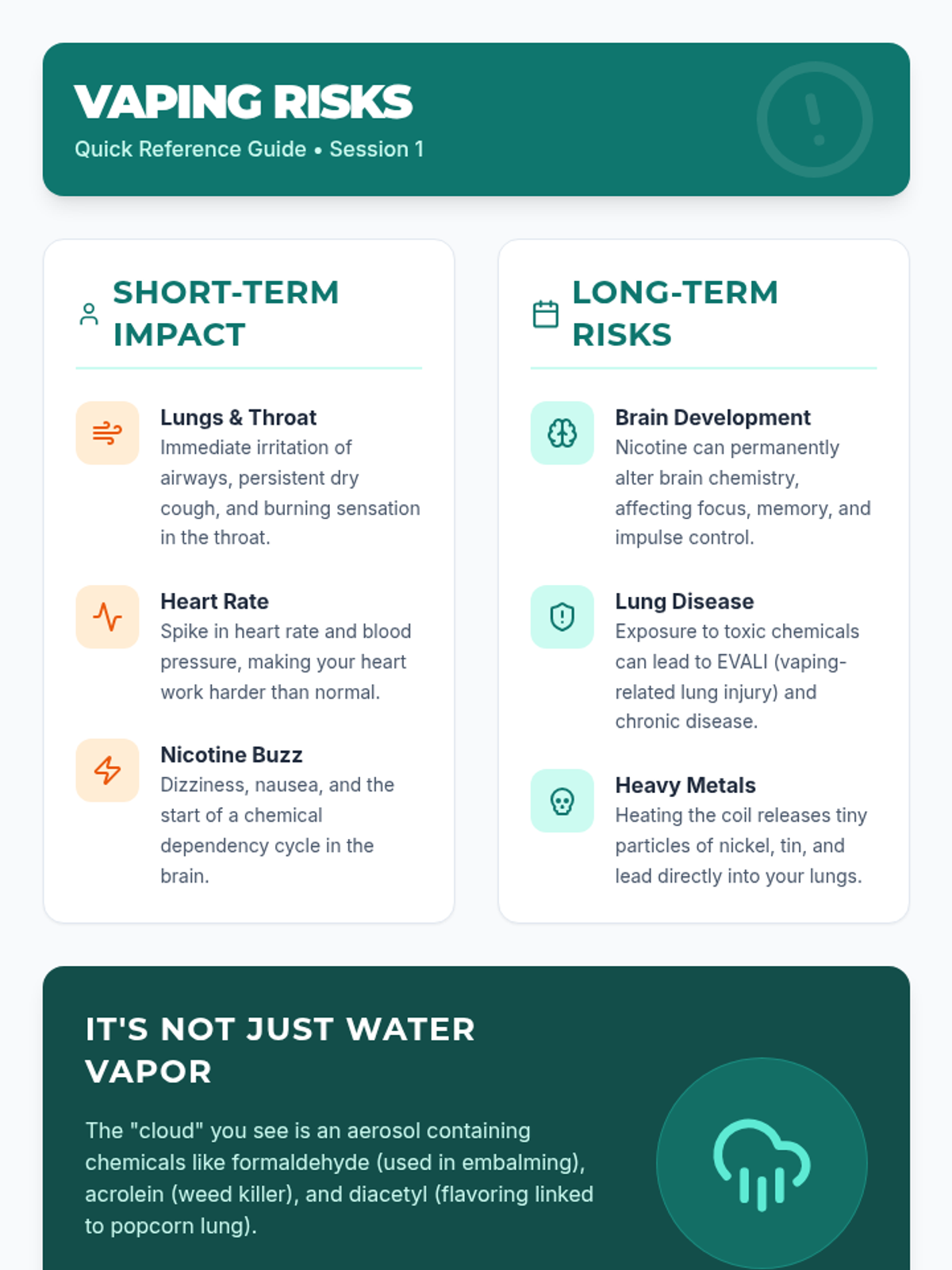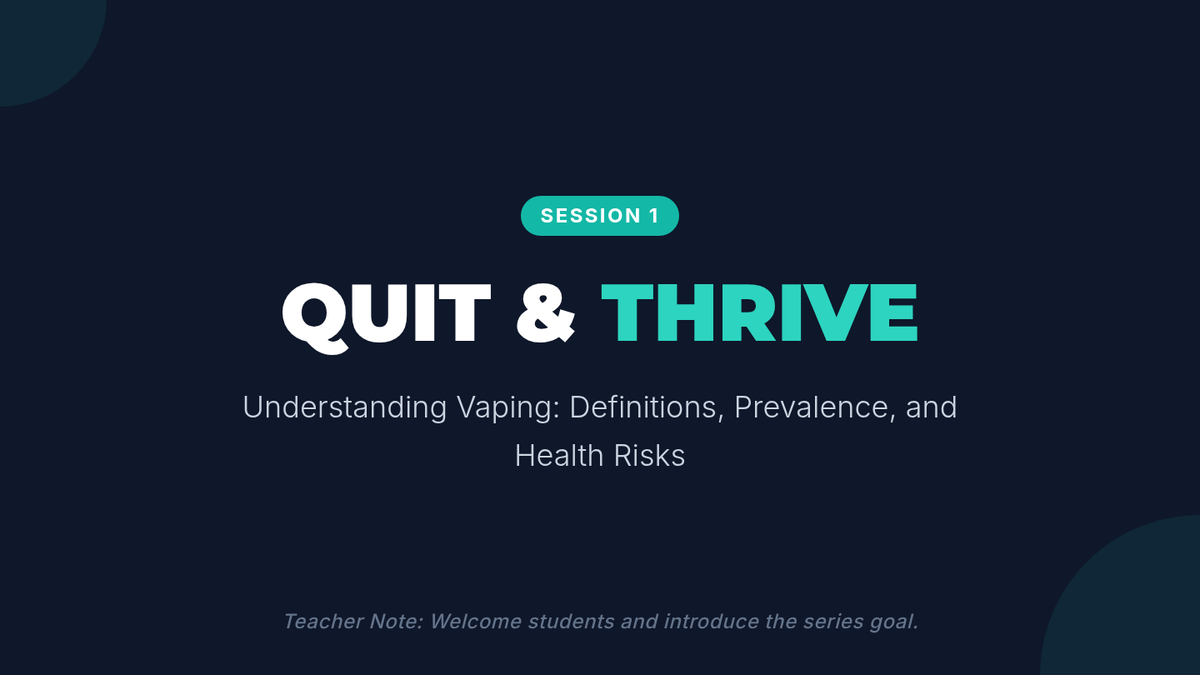 A comprehensive vaping prevention unit that covers health risks, the science of nicotine addiction, and social refusal strategies for middle and high school students.