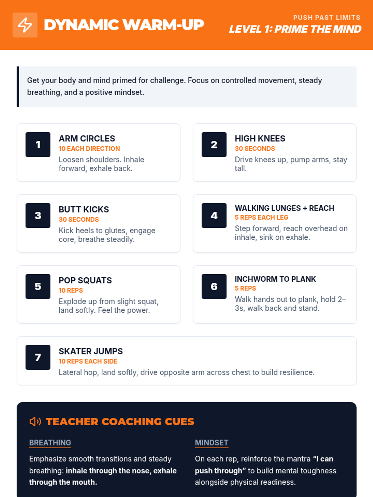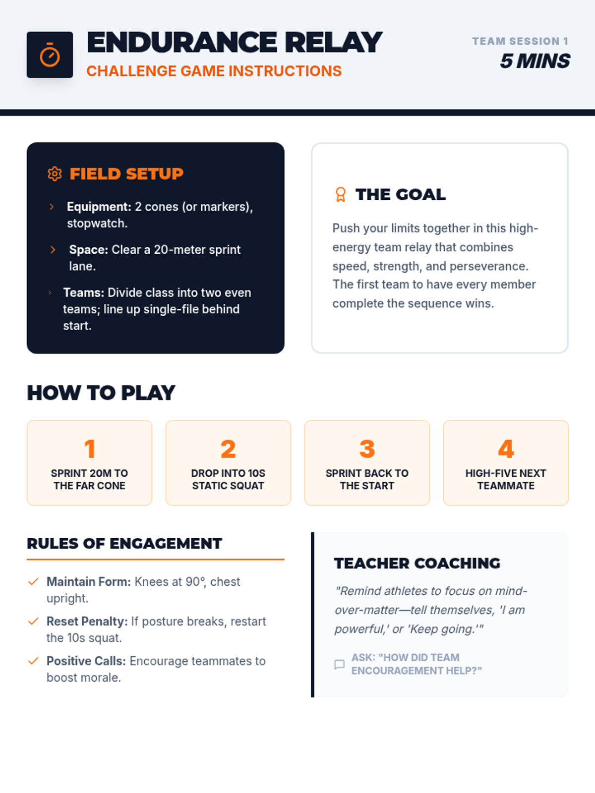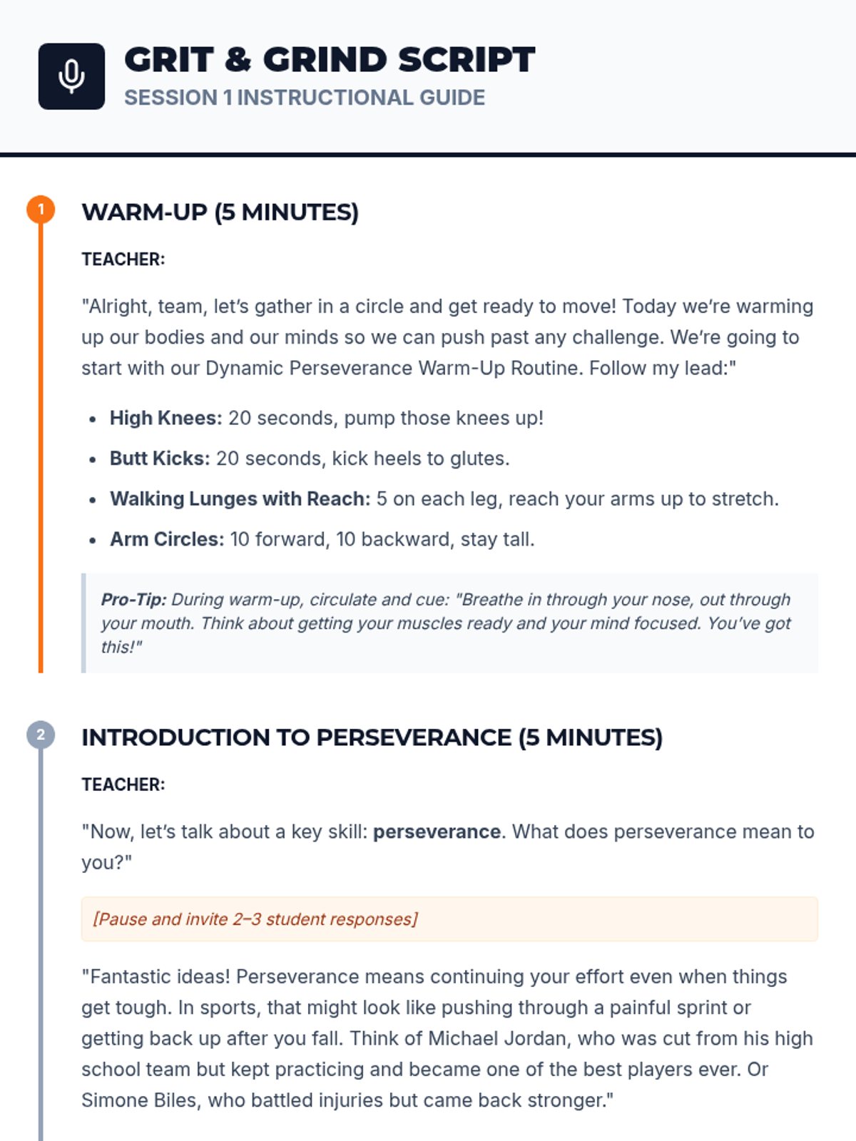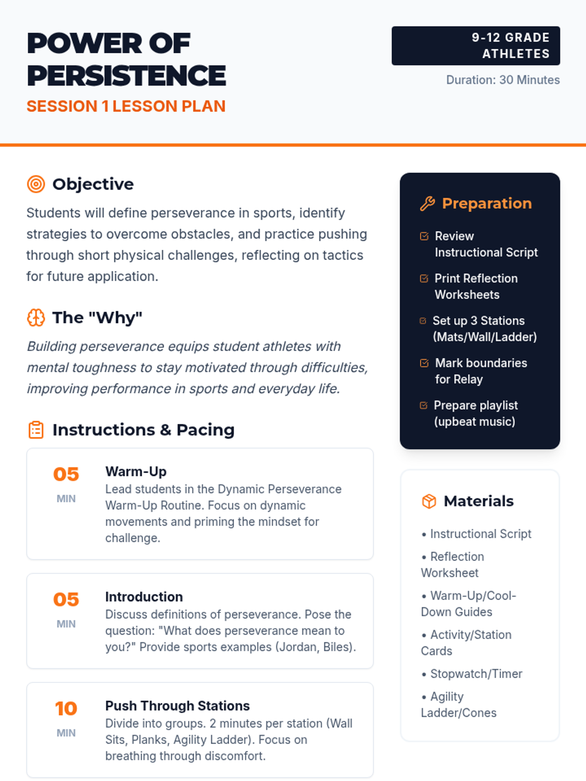 A two-session unit for 9-12 grade student athletes to develop perseverance and grit through physical challenges, collaborative games, and reflective goal-setting.