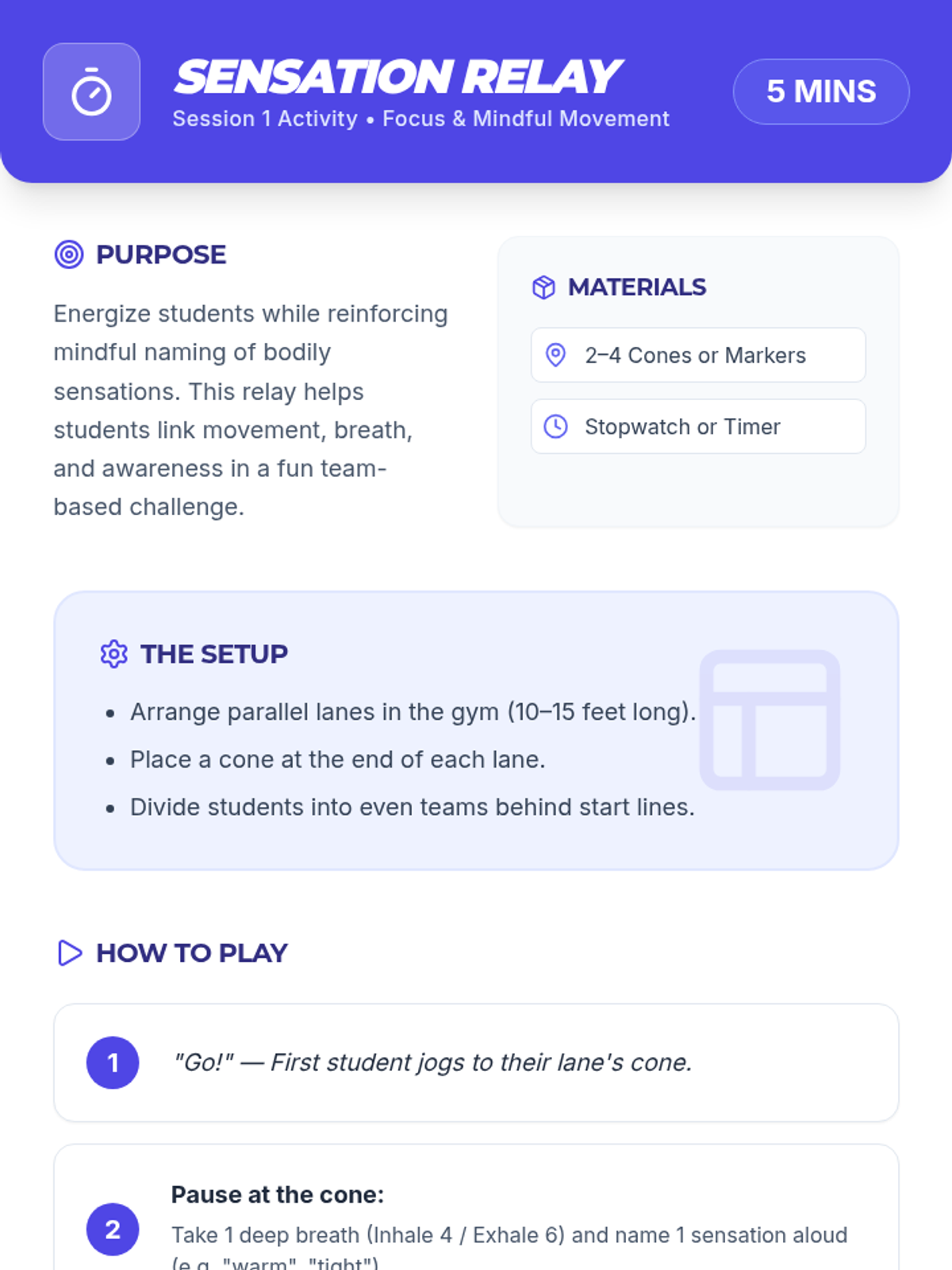 A 5-lesson sequence focused on building emotional regulation and conflict resolution skills through active gameplay and simulations in physical education.