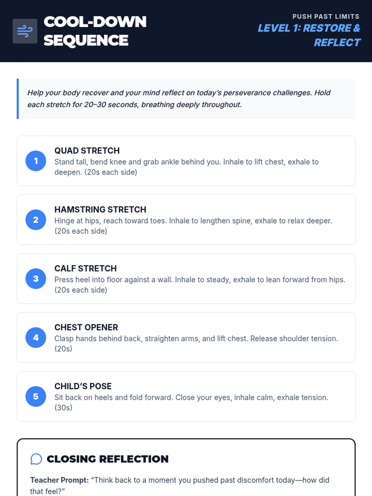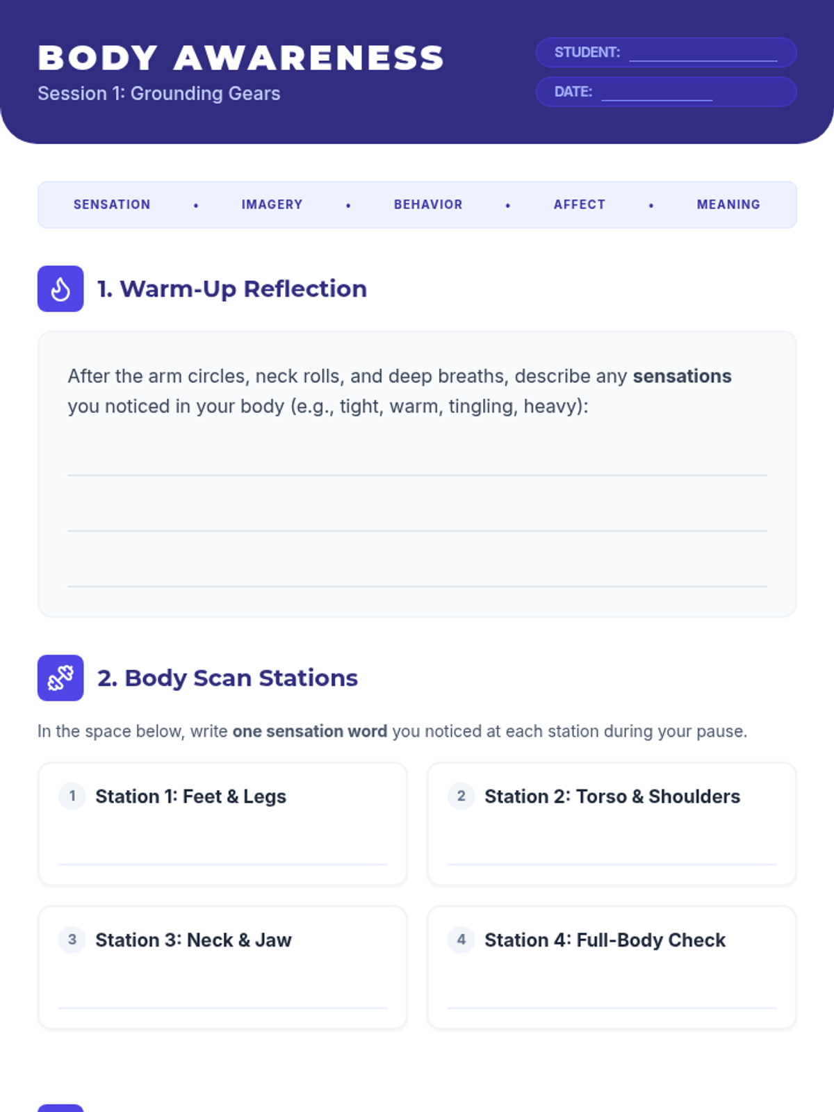 This sequence explores the physiological connection between breath, the nervous system, and stress management. Students learn to transition from 'fight or flight' to the 'rest and digest' state through evidence-based techniques like diaphragmatic breathing, box breathing, and progressive muscle relaxation, ultimately building a personalized self-regulation toolkit.