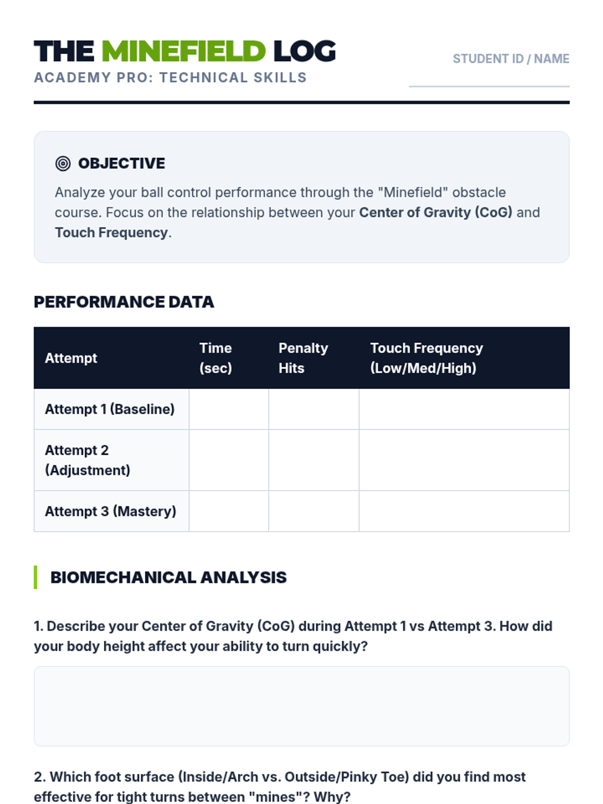 This high-performance football (soccer) unit focuses on technical mastery of ball control, dribbling, and retention. Students analyze the biomechanics of movement and apply deceptive feints and physical shielding to dominate in 1v1 scenarios.