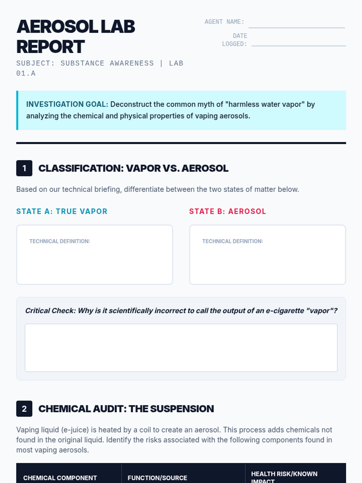 A comprehensive investigation into the vaping epidemic, exploring scientific, medical, economic, and legislative perspectives to empower students to propose evidence-based health policies.
