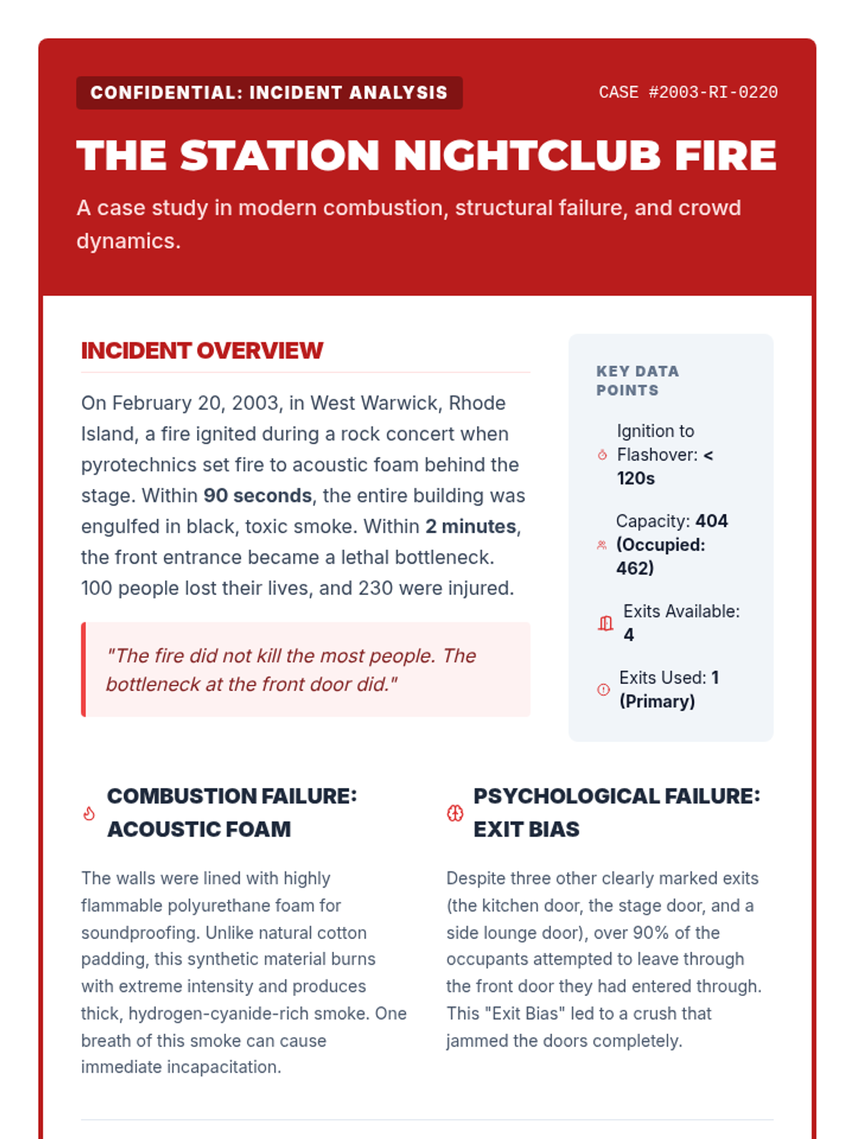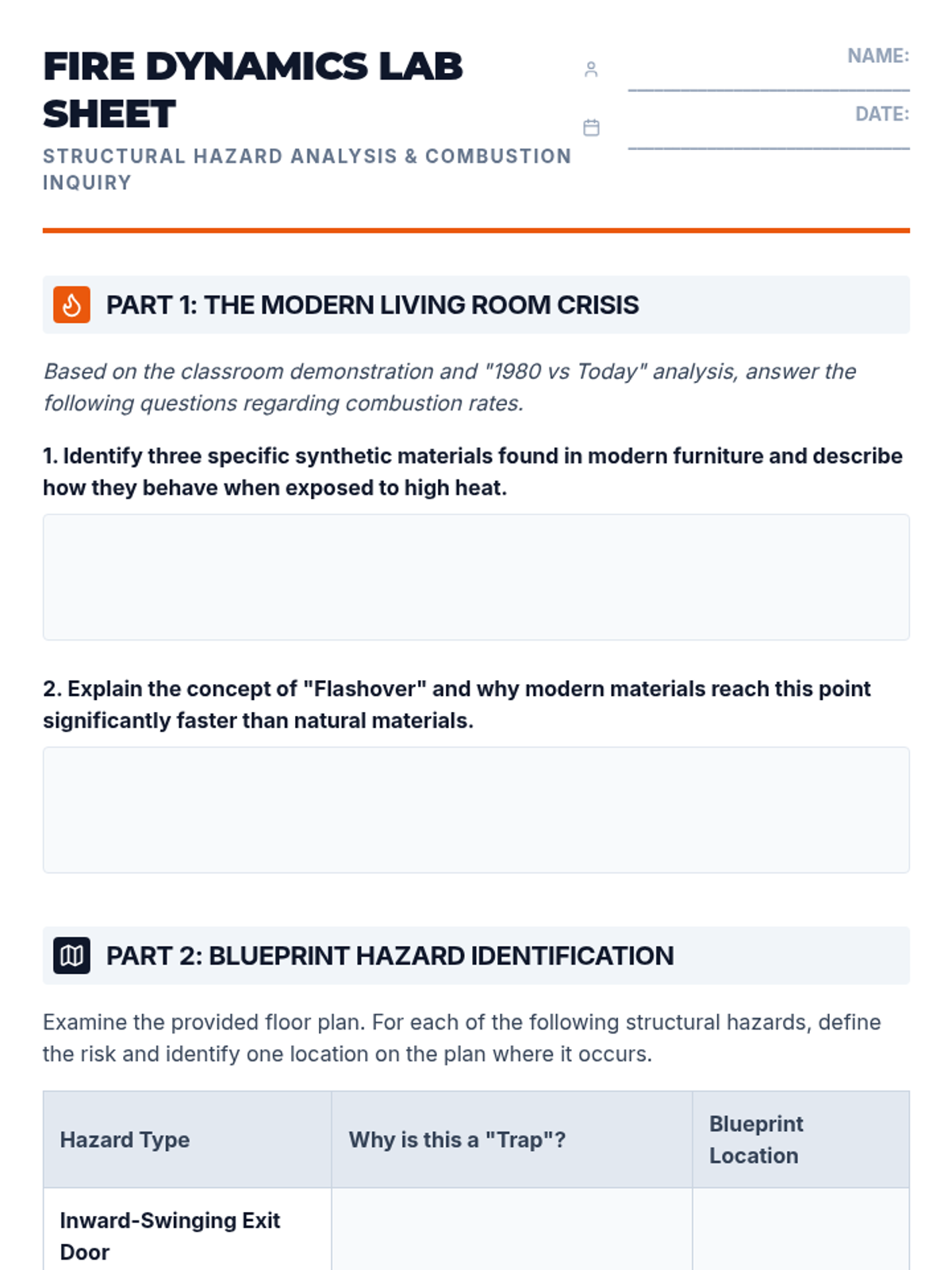 A comprehensive 10th-grade safety sequence focusing on the science of fire dynamics, advanced evacuation planning, the physiology of drowning, and crisis management leadership. Students transition from basic awareness to professional-level risk assessment and emergency protocol design.