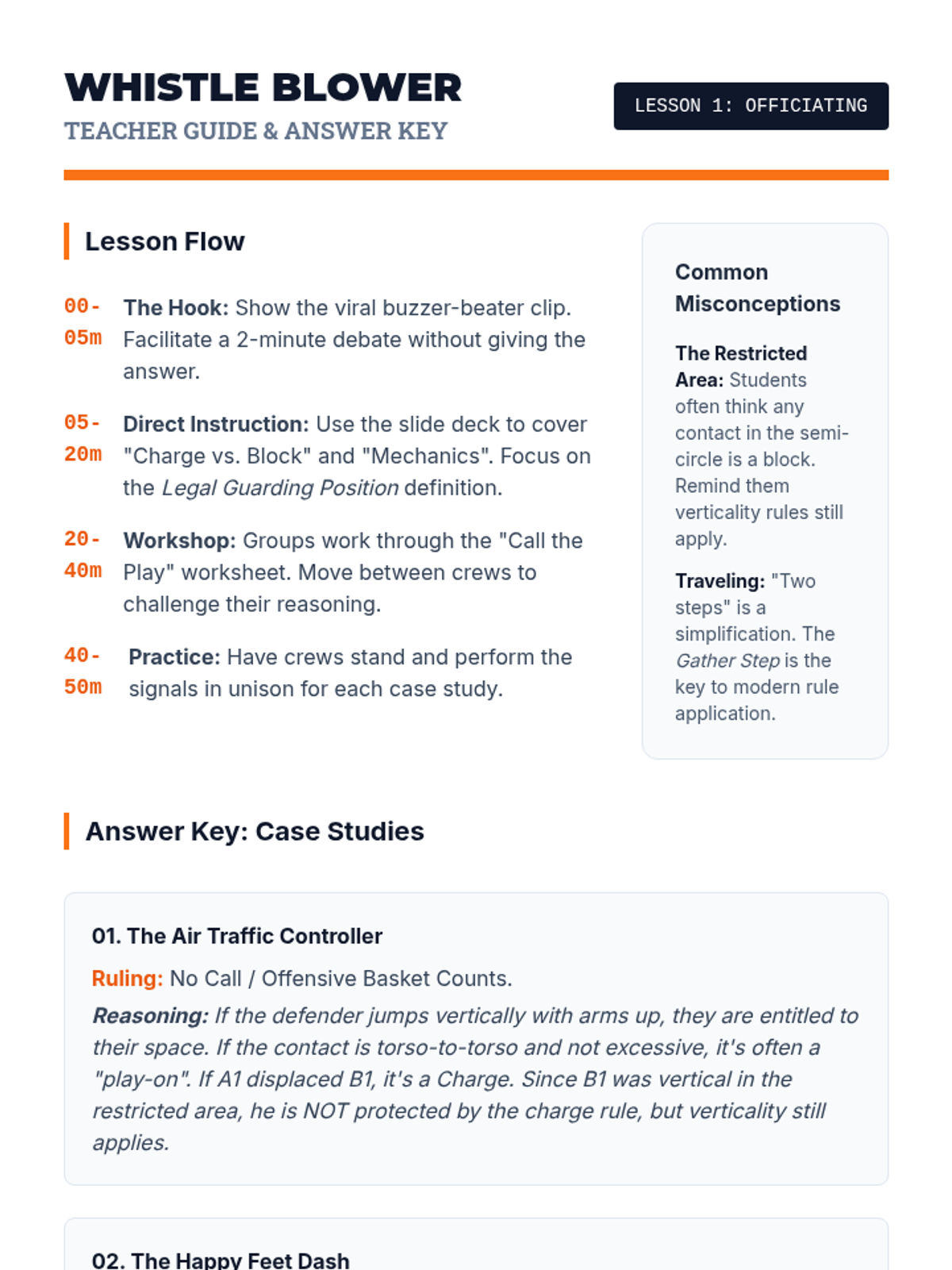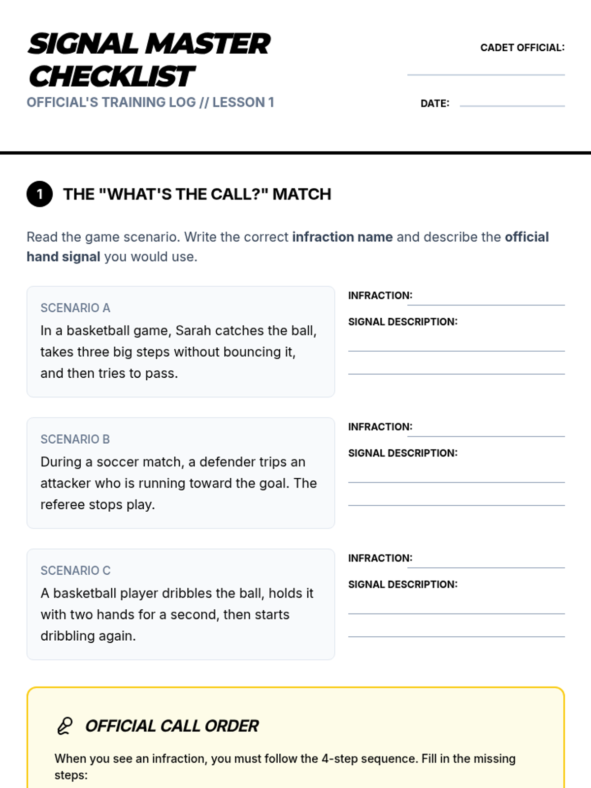 A 5-lesson sequence designed to build empathy and sportsmanship by putting students in the role of game officials. Through simulations, hand signal practice, and conflict resolution workshops, students gain a first-hand understanding of the challenges referees face, ultimately fostering a culture of respect in physical education.