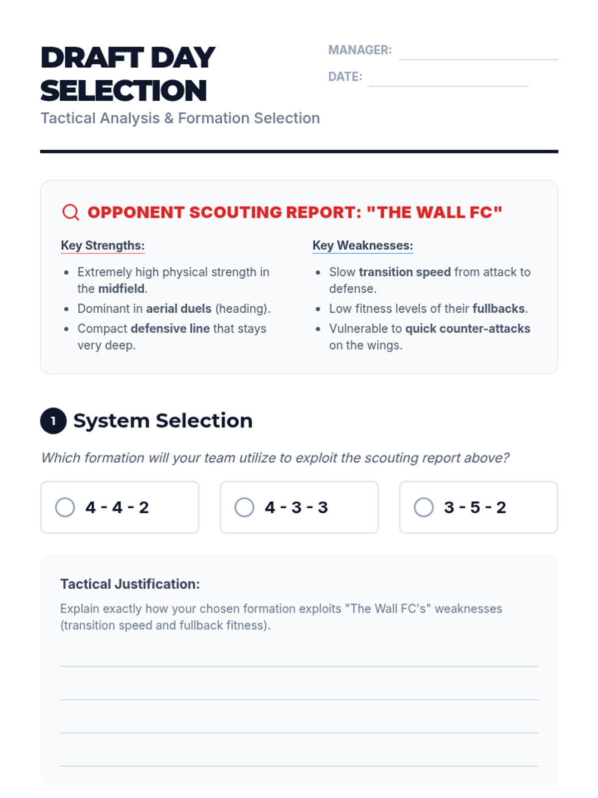 A project-based unit where 10th-grade students analyze football formations, master the laws of the game, and develop strategic game plans for a culminating tournament. Students transition from players to coaches and analysts, focusing on real-time tactical adaptation and performance reflection.