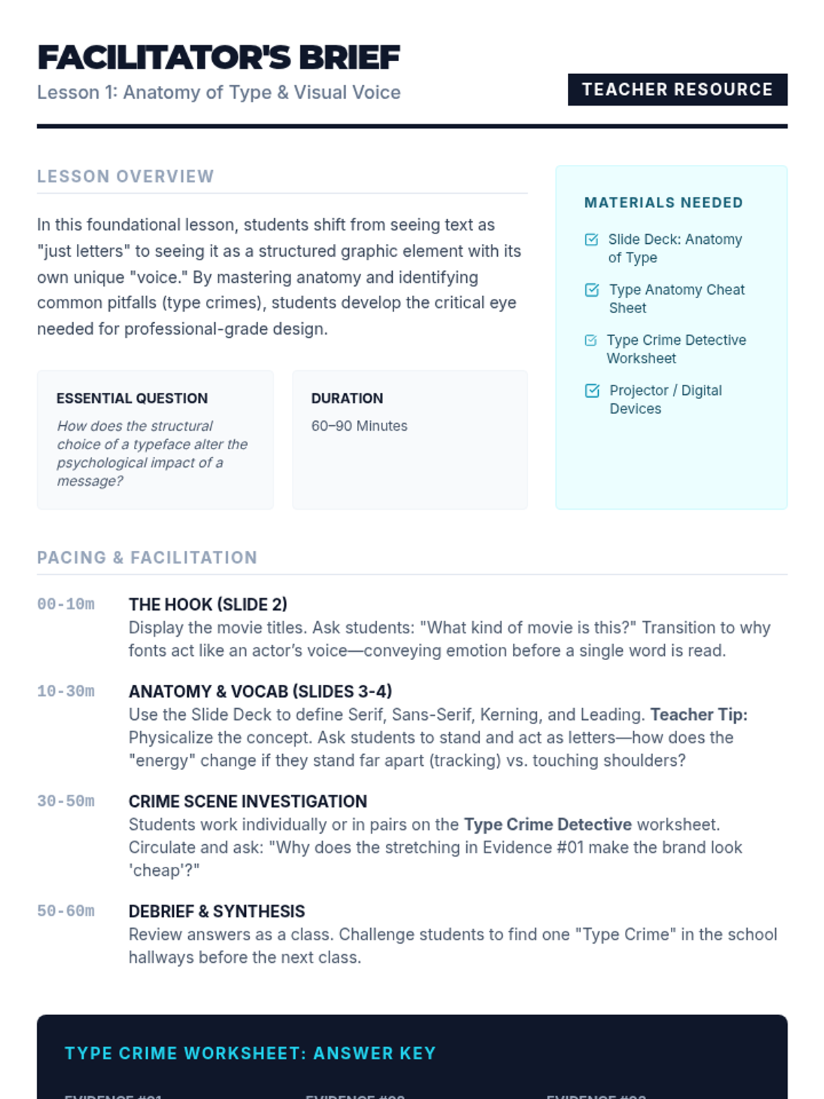 A 5-lesson unit for 9th-grade students exploring the fusion of typography and imagery. Students transition from manual layout techniques and font psychology to digital vector design and the production of a physical 8-page Zine.