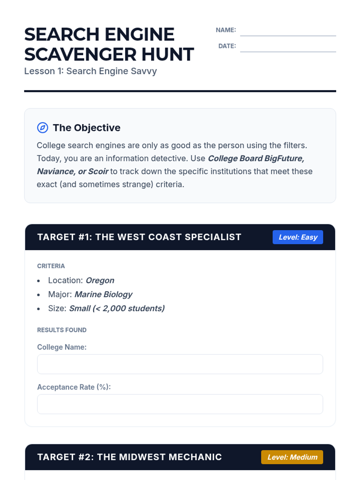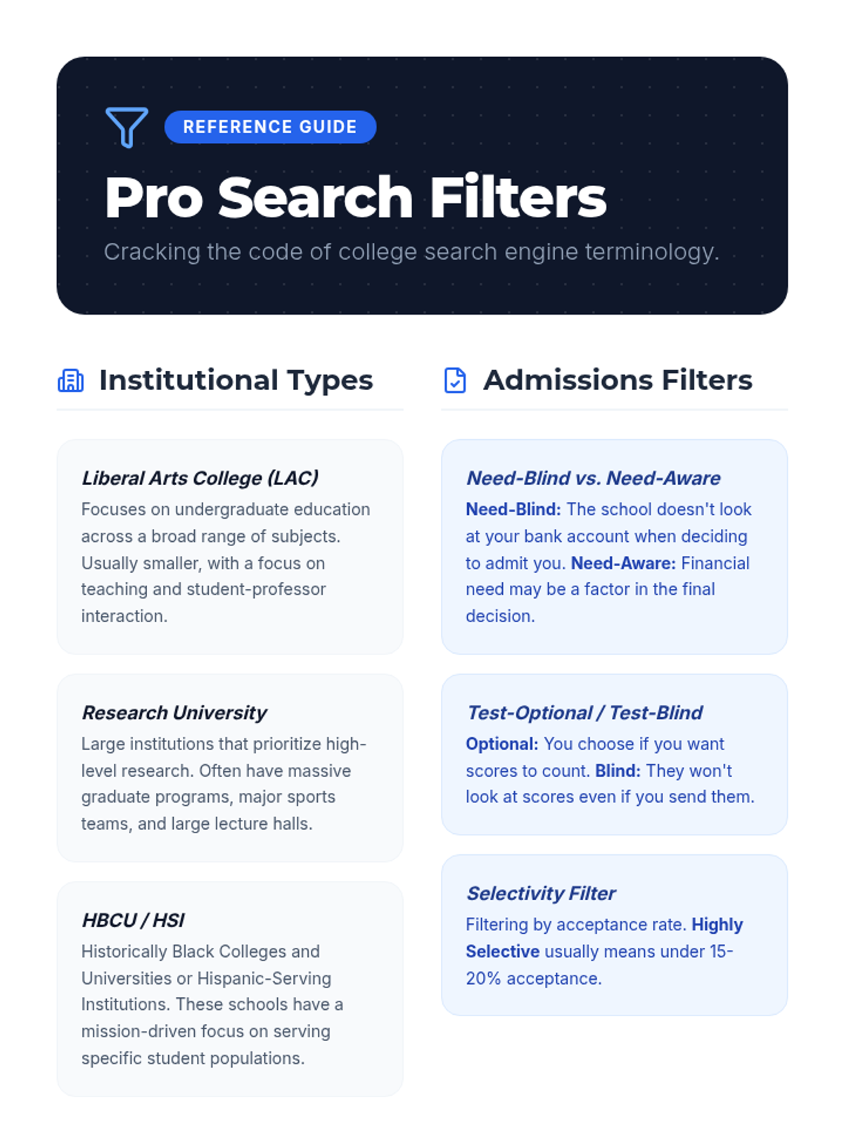 College selection, application workflows, and financial aid navigation including FAFSA and scholarship acquisition. Builds skills in personal statement writing and career exploration to align post-secondary choices with long-term professional goals.