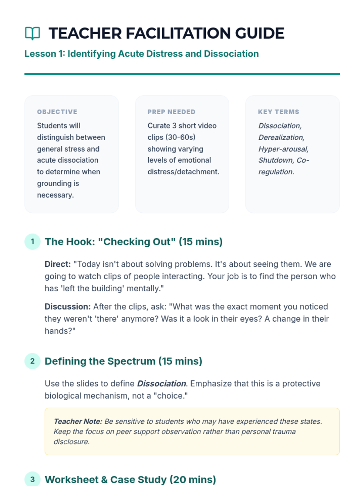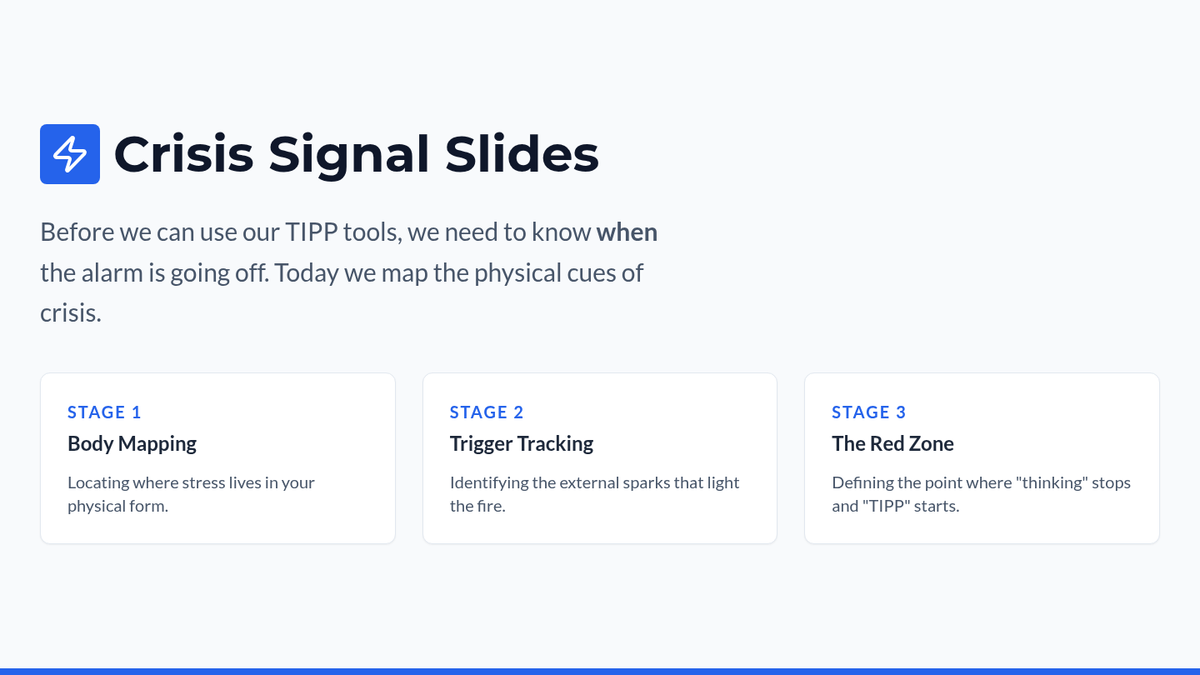 Identifies mental health crises and suicide warning signs while developing personal safety plans and grounding techniques. Equips users with peer gatekeeper skills and direct pathways to professional crisis resources and hotlines.