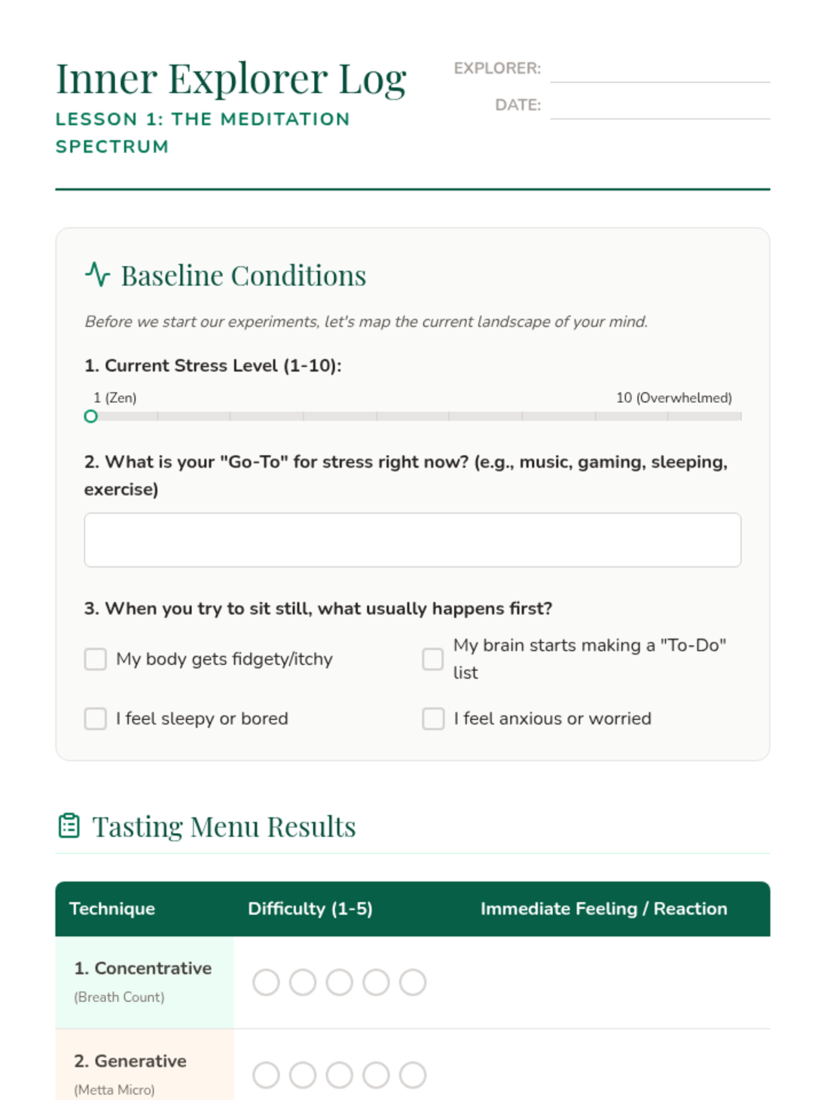 A 5-lesson unit for 11th-grade students to explore various meditation modalities, evaluate their effectiveness based on personal needs, and design a sustainable, personalized mental health practice.