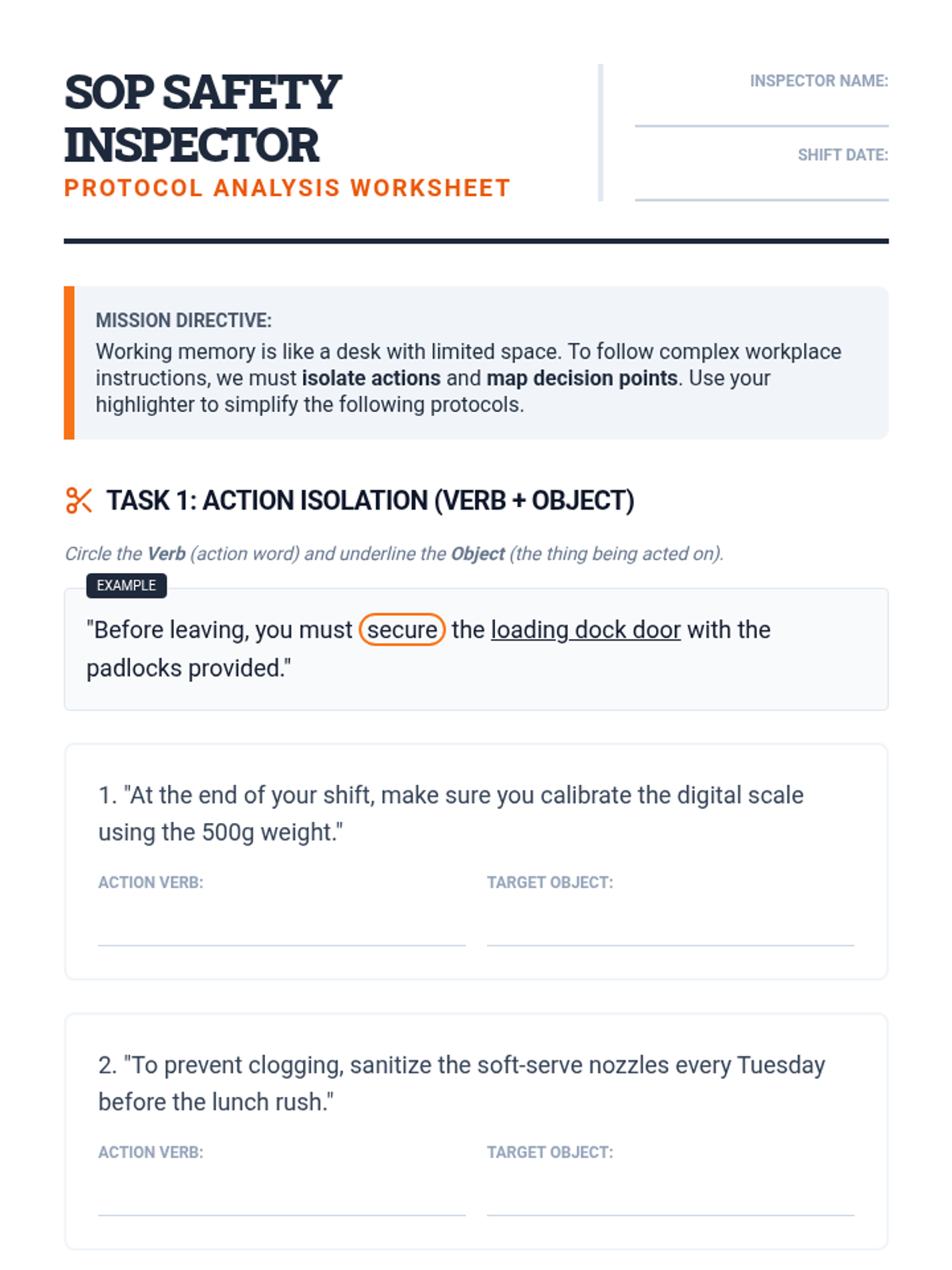 A vocational-focused sequence for 11th-grade students to improve working memory through deconstructing, translating, and executing multi-step workplace protocols and SOPs.